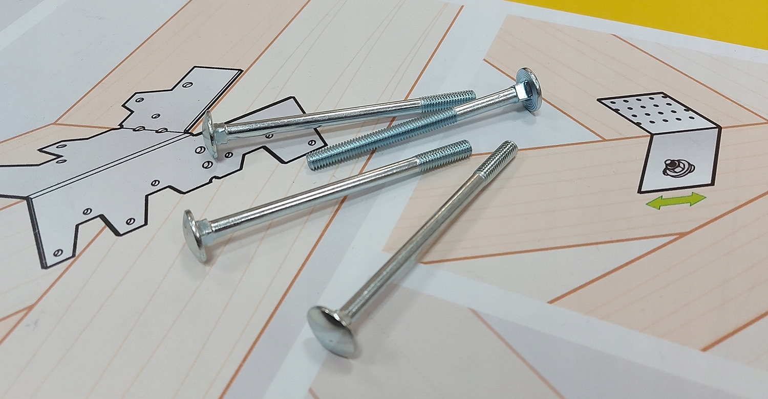 - Łeb grzybkowy z podsadzeniem kwadratowym - bezpieczne i estetyczne wykonanie połączenia, Podsadzenie zapobiega obrotowi śruby podczas montażu