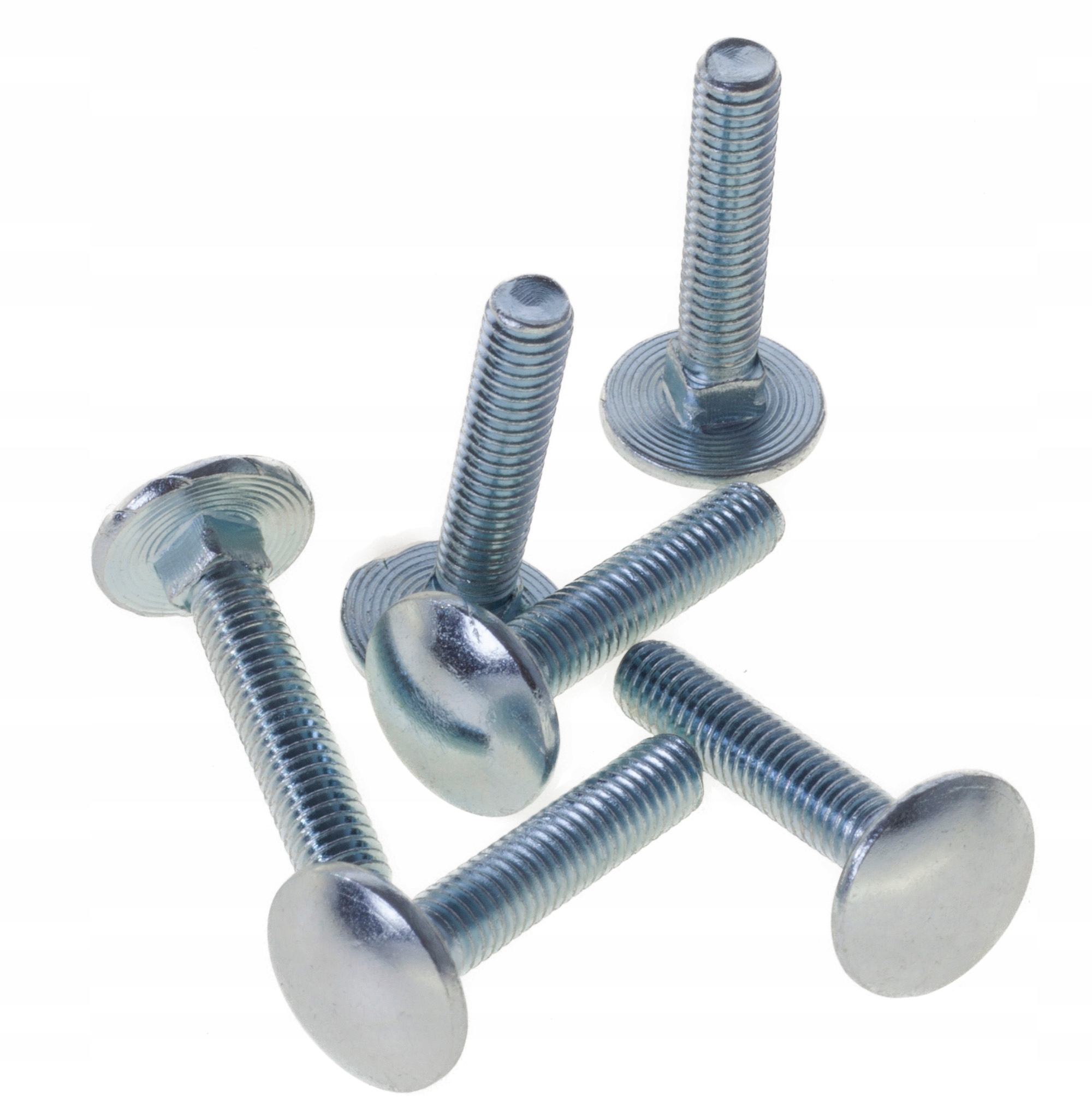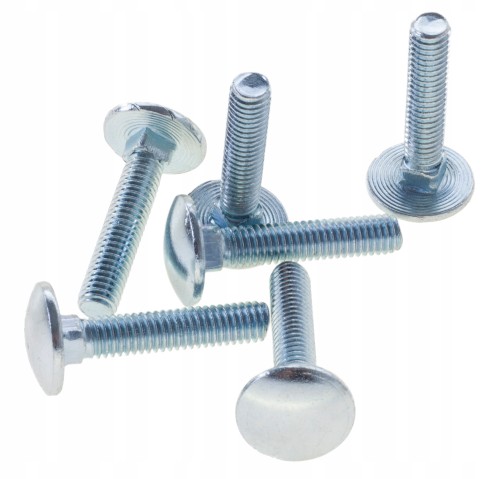- Łeb grzybkowy z podsadzeniem kwadratowym - bezpieczne i estetyczne wykonanie połączenia, Podsadzenie zapobiega obrotowi śruby podczas montażu