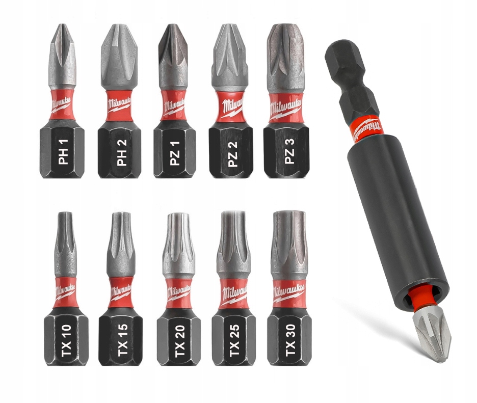 Bity udarowe końcówki Milwaukee PH PZ TORX komplet bitów 25mm zestaw 15szt