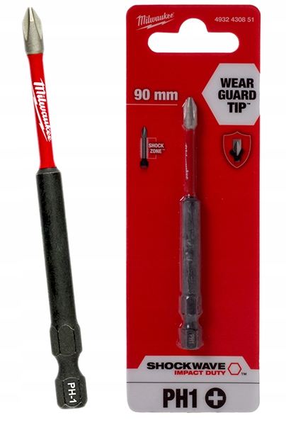 Bity udarowe Milwaukee z serii SHOCKWAVE Impact Duty stanowią najbardziej wytrzymałe bity dostępne na rynku, cechujące się doskonałym dopasowaniem do zadań. Ich charakterystyczną cechą jest unikalna strefa absorbująca wstrząsy - SHOCKZONE, która skutkuje imponującą wytrzymałością nawet do 30 razy dłuższą niż w przypadku bitów innych marek. Ponadto, są one zdolne przenieść aż 3-krotnie większy moment skręcający niż konkurencyjne rozwiązania.