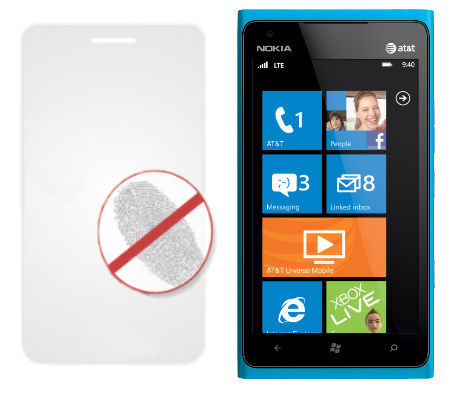 Wielowarstwowa folia ochronna na ekran do smartfonu Nokia Lumia 900 wraz z ściereczką do czyszczenia z mikrofibry