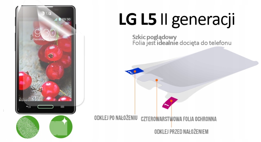 Wielowarstwowa folia ochronna na ekran do smartfonu LG L5 II wraz z ściereczką do czyszczenia z mikrofibry