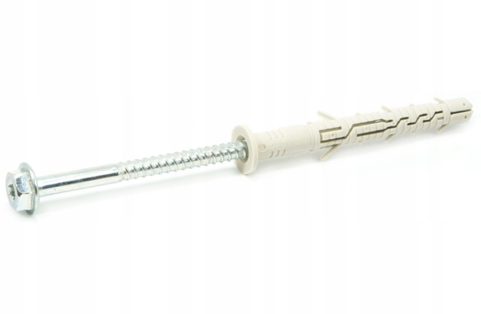 Kołek ramowy rozporowy tworzywowy z wkrętem z łbem sześciokątnym podkładkowym i gniazdem TX do montażu poprzez element mocowany do wszystkich klas podłoży.