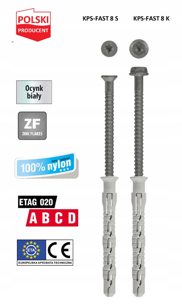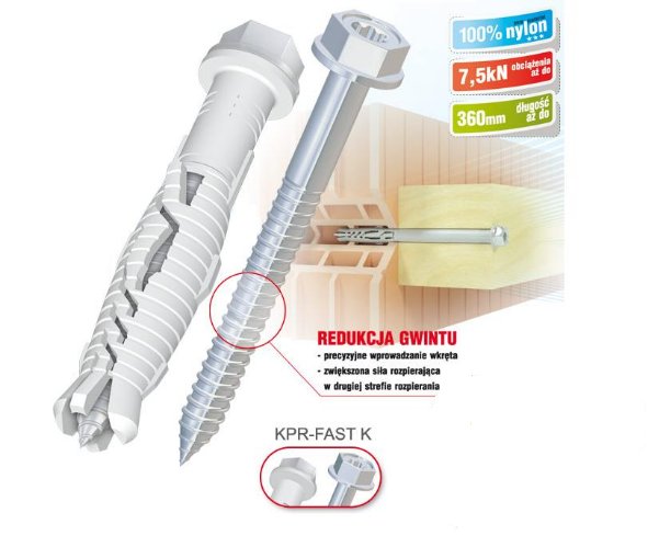 - Zaokrąglony profil gwintu zwiększa siłę rozparcia kołka, ponieważ gwint nie nacina koszulki.