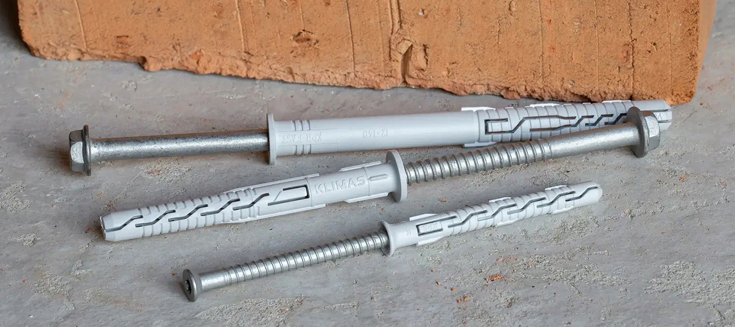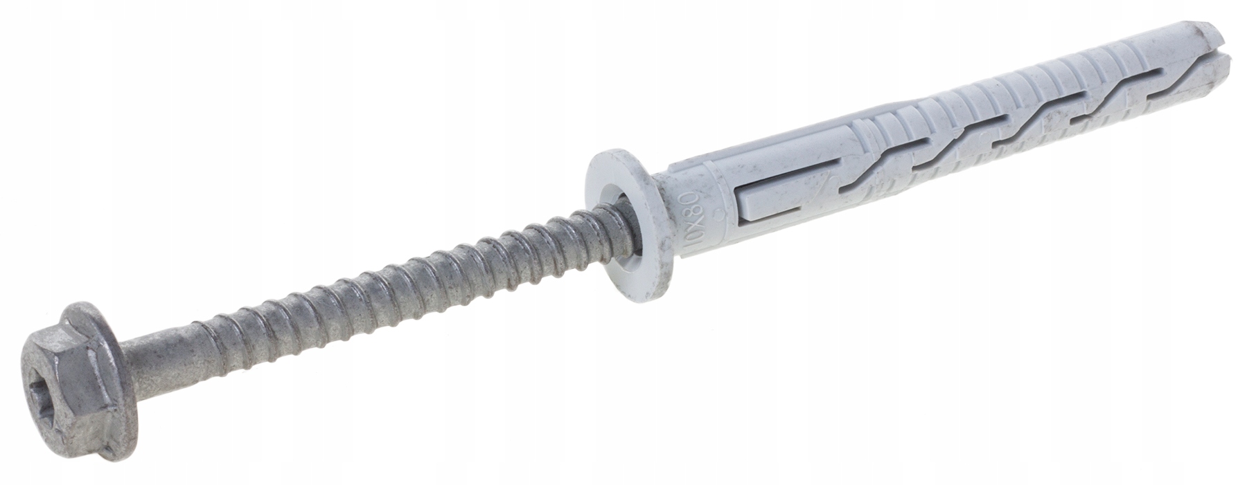 Kołek ramowy rozporowy tworzywowy z wkrętem z łbem sześciokątnym podkładkowym i gniazdem TX do montażu poprzez element mocowany do wszystkich klas podłoży.