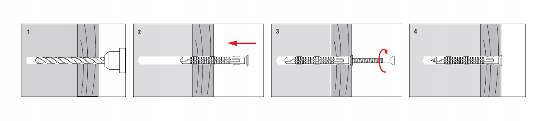 - Rozparcie w 4 kierunkach zwiększa powierzchnię docisku i nośność zakotwienia.