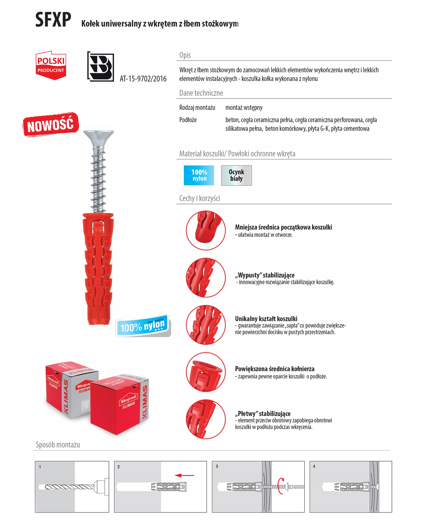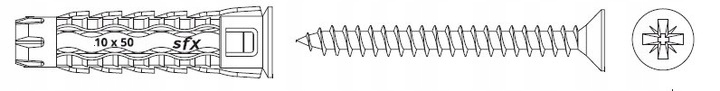 UNIWERSALNY KOŁEK ROZPOROWY SFXP 10x50mm Z WKRĘTEM 6x60mm