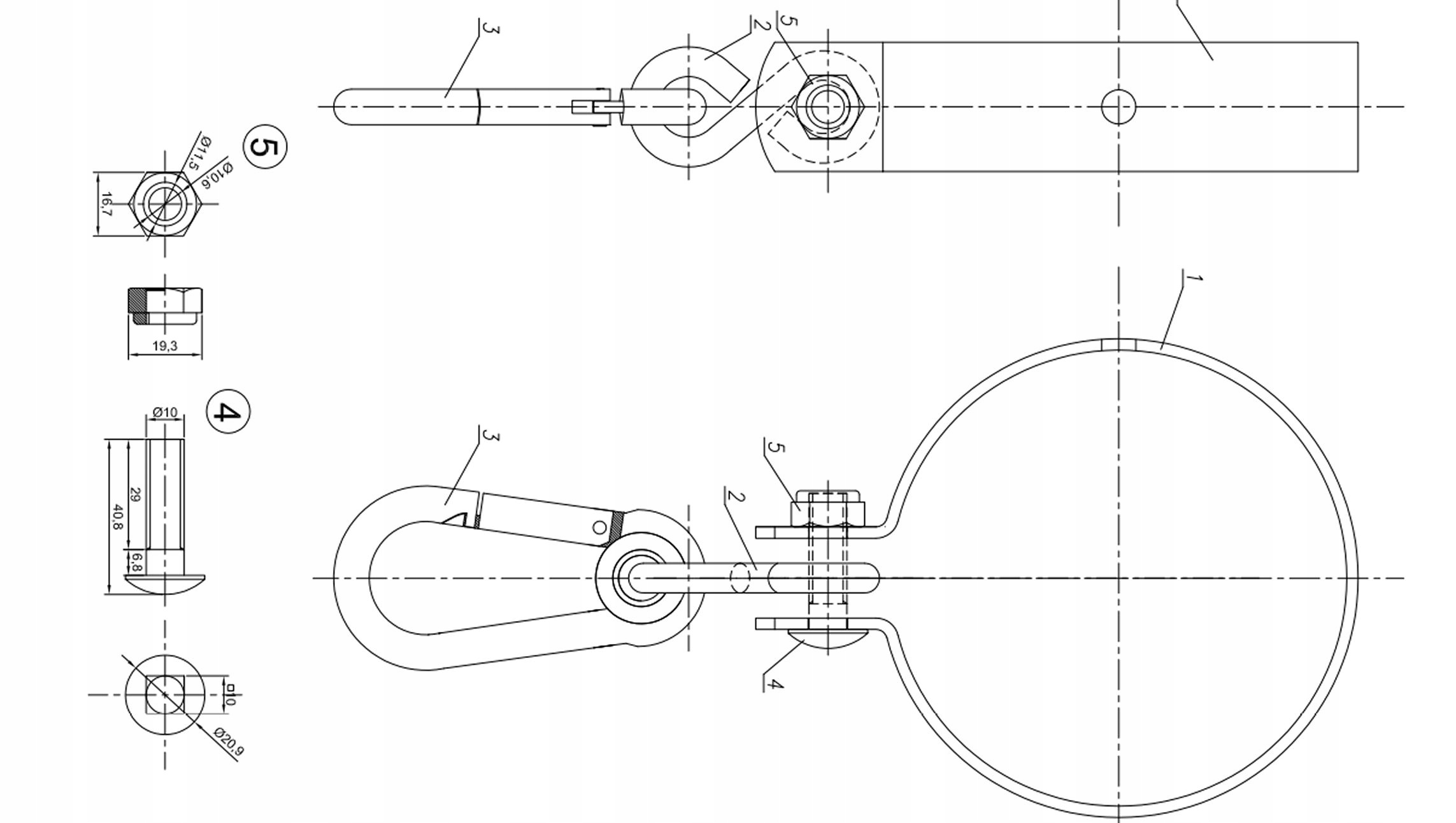 - Wieszak z karabinkiem do belek okrągłych