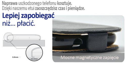 Pokrowiec wykonany jest z wytrzymałego materiału o ciekawej fakturze i miłego w dotyku. Produkt posiada miękkie wnętrze, chroniące ekran przed zarysowaniami. Idealnie dopasowana nakładka TPU solidnie utrzymuje telefon wewnątrz. Etui zamykane jest na magnes ukryty pod nakładką.