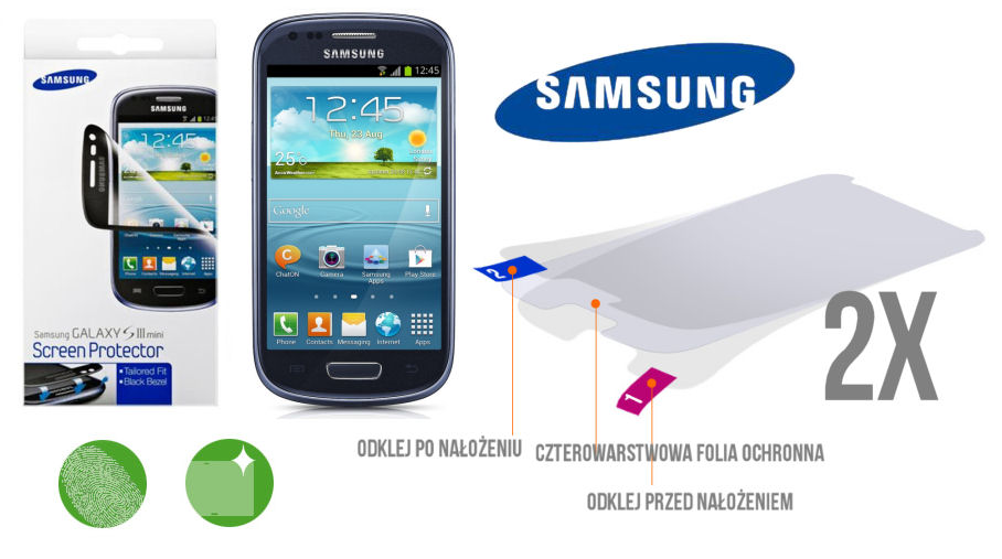 Oryginalna folia ochronna Samsung na ekran do smartfonu Samsung Galaxy S3mini wraz z ściereczką do czyszczenia z mikrofibry, aplikatorem oraz kartą