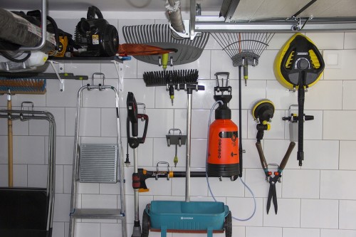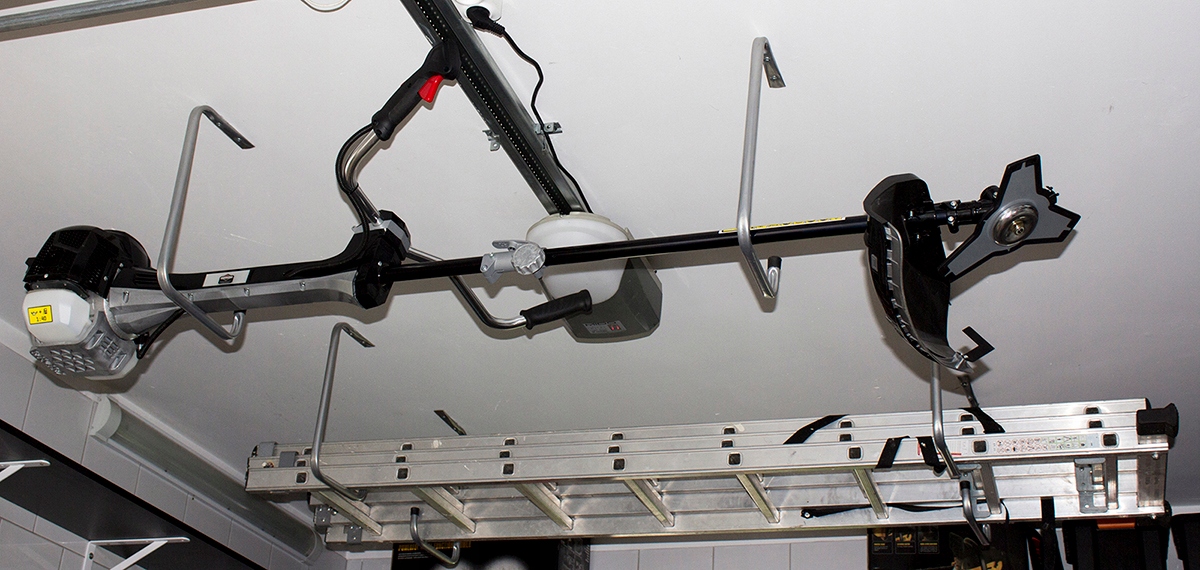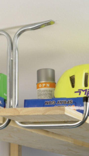 Haki mocowane do sufitu lub półki, na których można z powodzeniem przechowywać narzędzia ogrodnicze czy sprzęt sportowy.