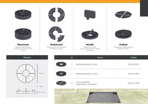 - Podłoże, na którym układane są podstawki powinno być stabilne i równe, umożliwiające odprowadzenie wody deszczowej.