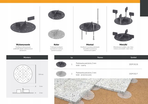 Podkładka pod płyty tarasowe kafelki 2mm plastik