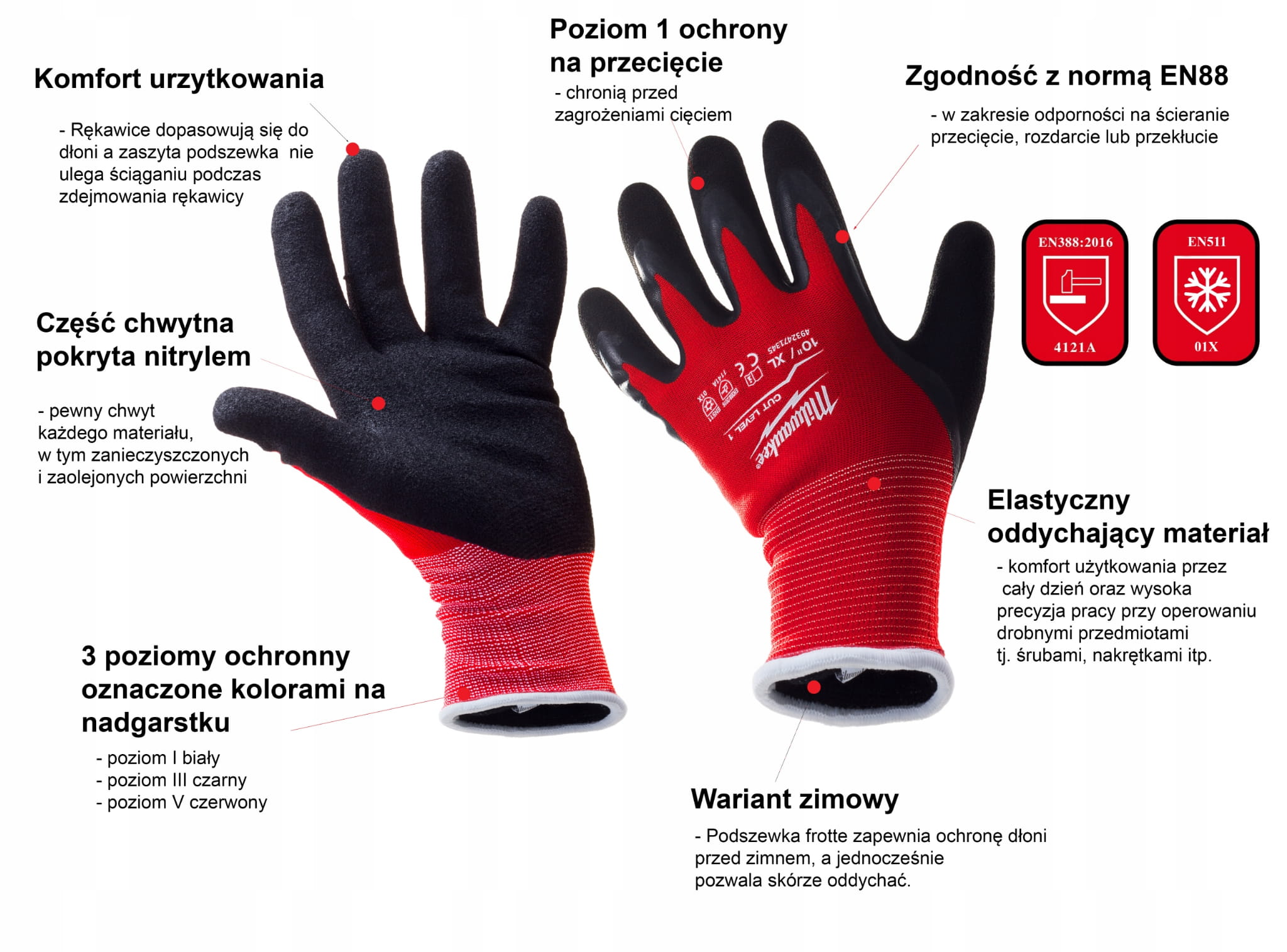 Zimowe ocieplane rękawice robocze odporne na przecięcia Milwaukee rozmiar 11" XXL