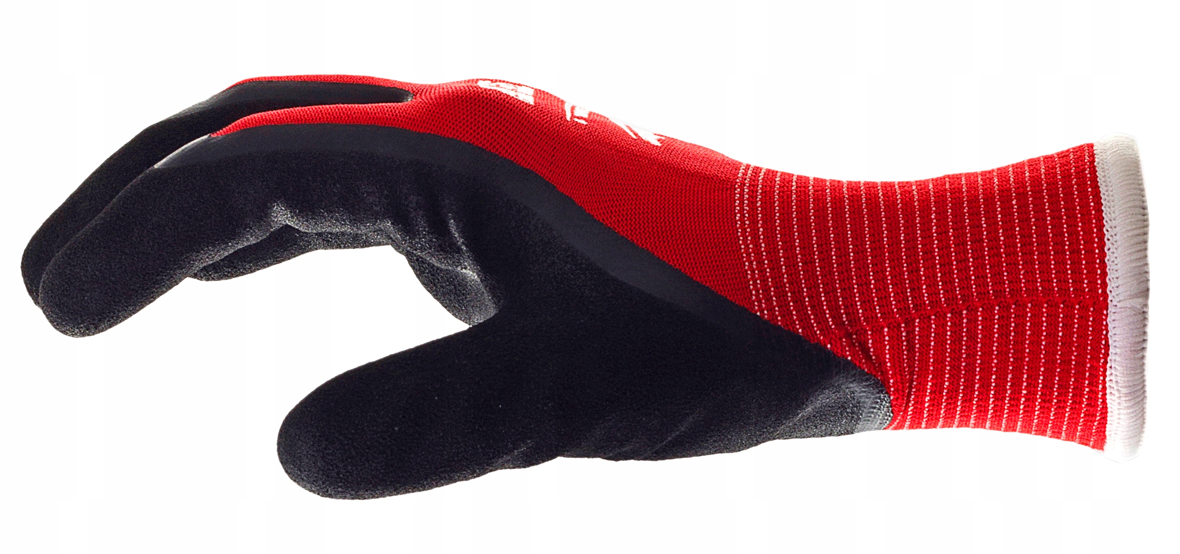 - Część chwytna pokryta nitrylem - pewny chwyt każdego materiału, w tym zanieczyszczonych i zaolejonych powierzchni.