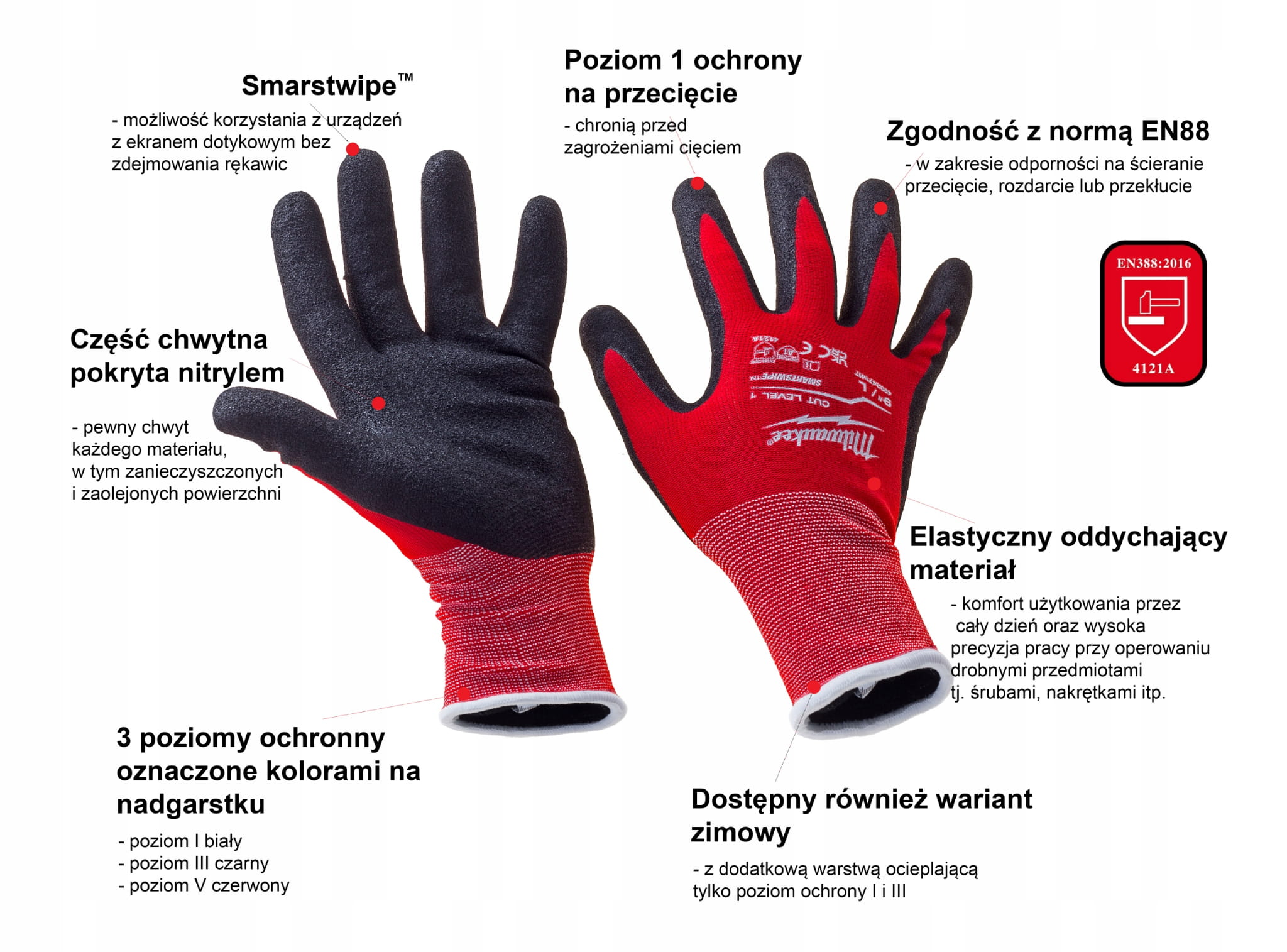 Rękawice ochronne robocze odporne na przecięcia Milwaukee rozmiar 10" - XL