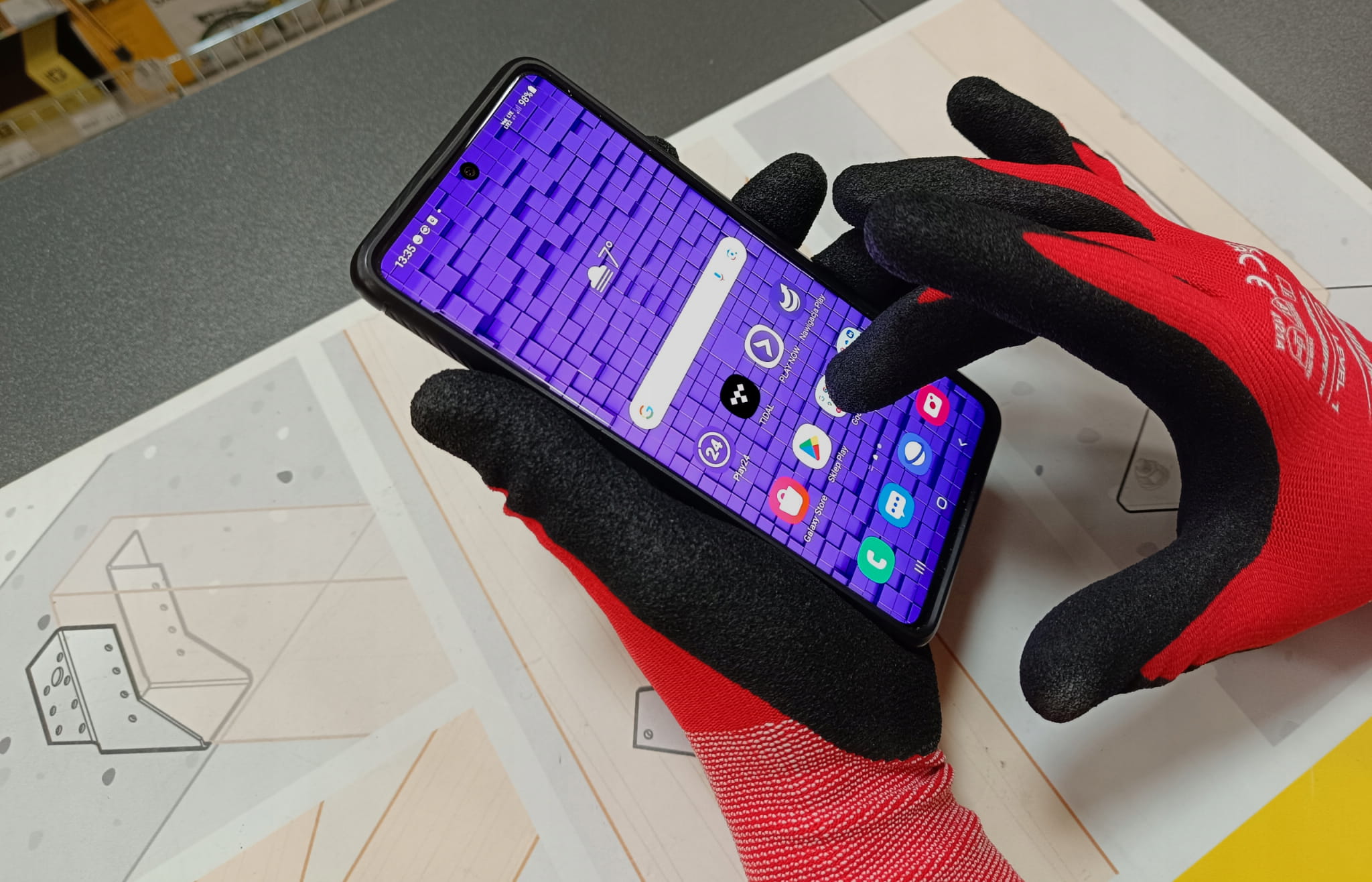 - Elastyczny materiał idealnie dopasowuje się do dłoni, zapewniając wysoką precyzję przy operowaniu drobnymi przedmiotami, np. nakrętkami, śrubami, itp.