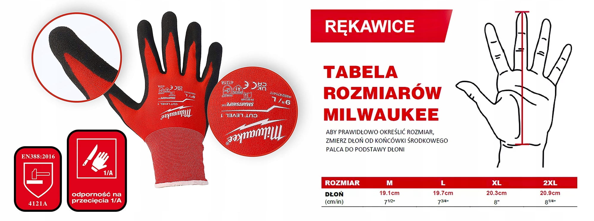 Rękawice ochronne robocze odporne na przecięcia Milwaukee rozmiar 11" - XXL