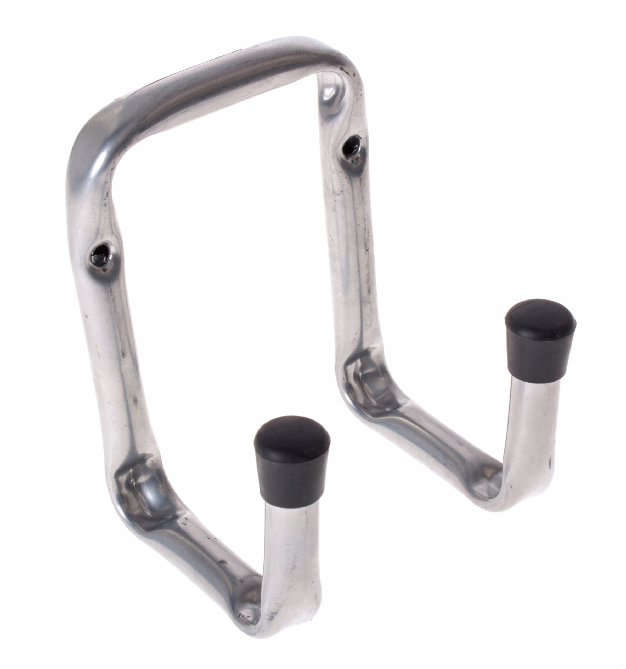 Podwójne haki garażowe, które świetnie sprawdzają się do przechowywania narzędzi z szerokimi rączkami -wideł, łopat czy szpadli. Zagięcie na zakończeniu zabezpiecza przed zsunięciem się zawieszonych przedmiotów.