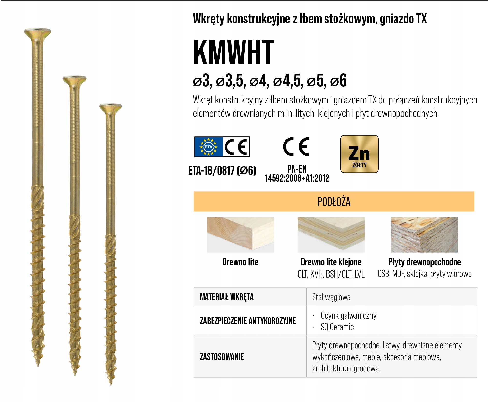 - Wkręty zostały wykonane zgodnie z wymogami normy PN-EN 14592:2008+A1:2012 co poświadcza Deklaracja Właściwości Użytkowych