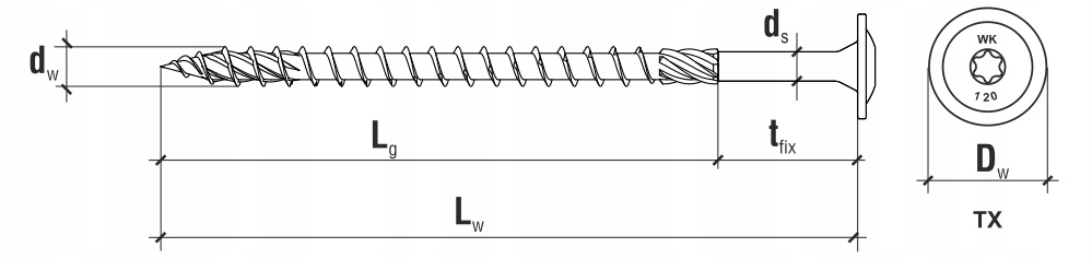 Wkręty konstrukcyjne znacząco poprawiają pracę przy montażu konstrukcji drewnianych, ponieważ posiadają polepszone zdolności do wkręcania się. Dodatkowo łeb podkładkowy z gniazdem TX zwiększa powierzchnię docisku zapewniając wysoką wytrzymałość na przeciąganie. Wkręty te w pełni zastępują gwoździe budowlane i nie wymagają nawiercania. Głębokie gniazdo TORX pozwala na lepsze przeniesienie siły wkręcającej i zapobiega wyskakiwaniu bitu.