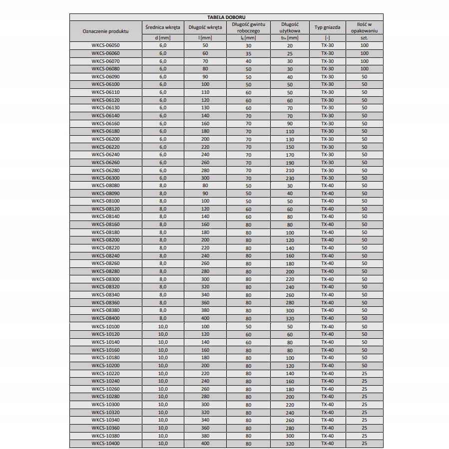 - Wkręty zostały wykonane zgodnie z wymogami normy PN-EN 14592:2008+A1:2012 co poświadcza Deklaracja Właściwości Użytkowych