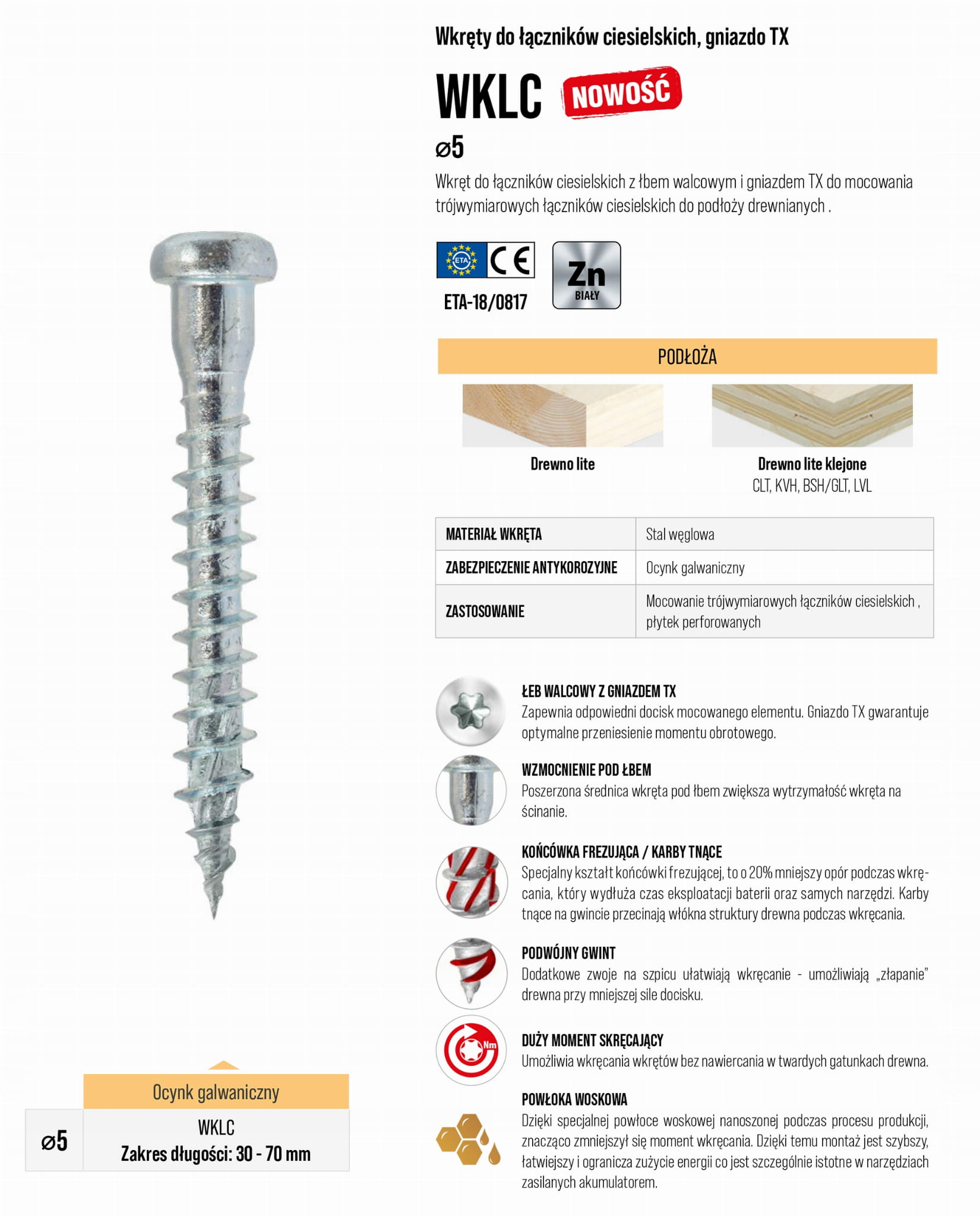 - Wkręty zostały wykonane zgodnie z wymogami normy PN-EN 14592:2008+A1:2012 co poświadcza Deklaracja Właściwości Użytkowych