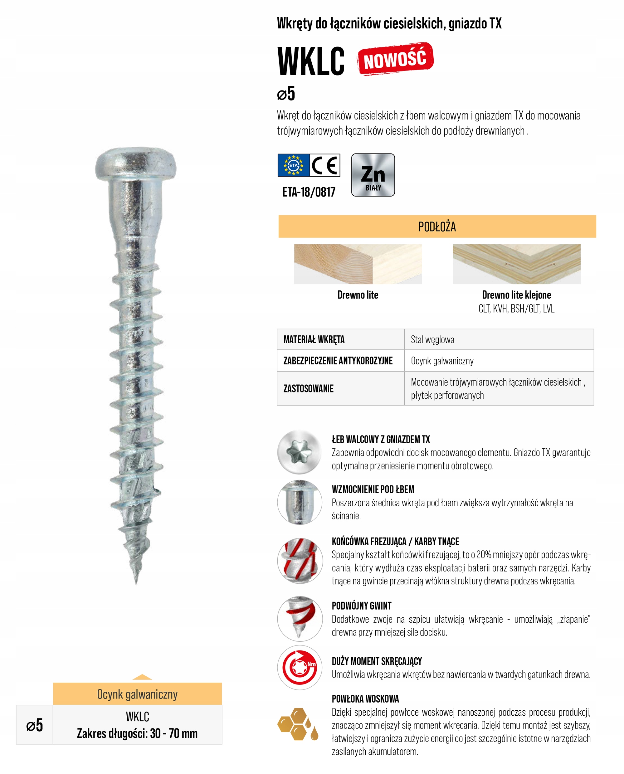 OCYNKOWANE WKRĘTY DO ŁĄCZNIKÓW CIESIELSKICH WKLC Ø 5x40mm TX20