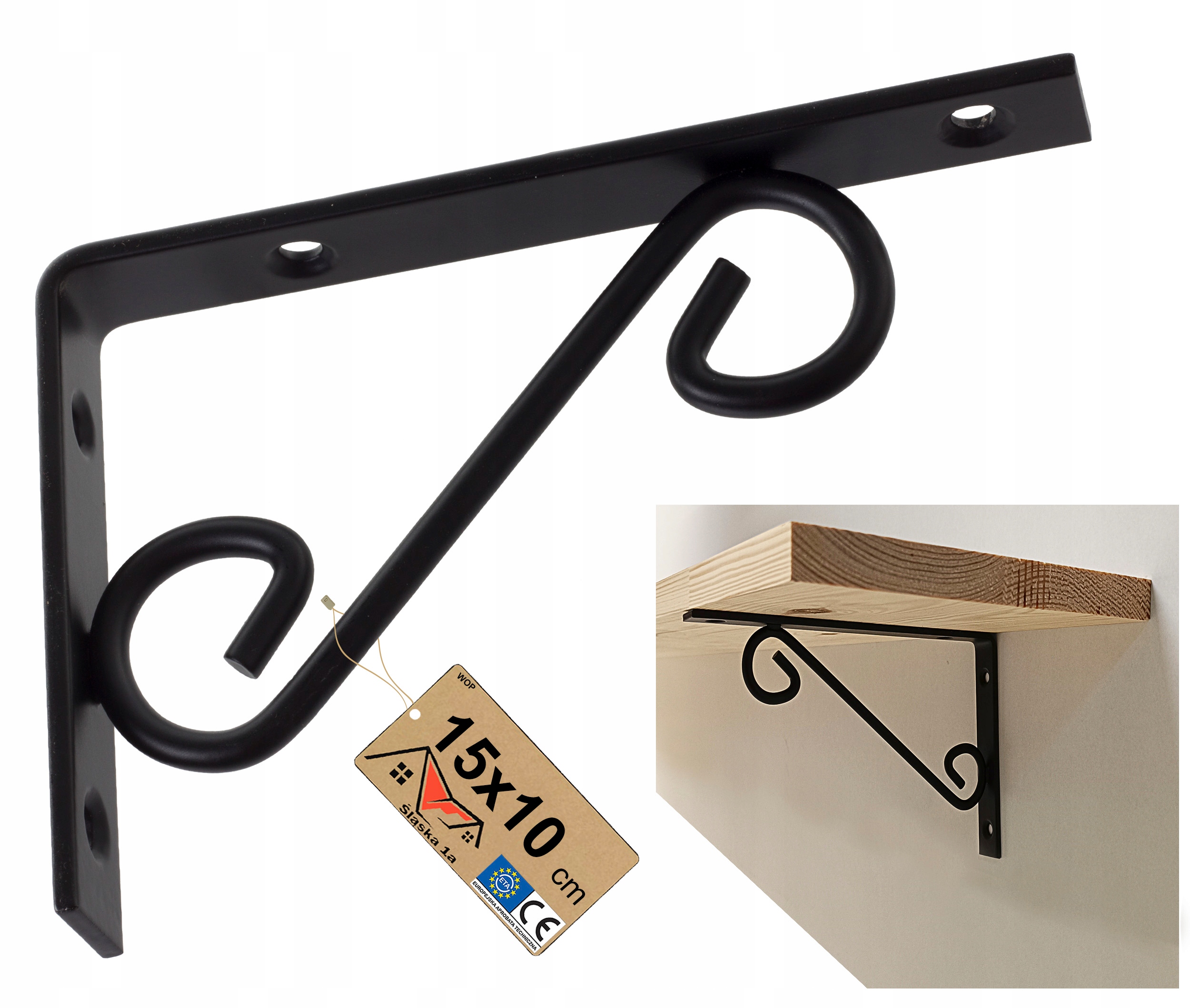 WSPORNIK DEKORACYJNY OZDOBNY POD PÓŁKĘ PÓŁEK PODPÓRKA UCHWYT CZARNY 15x10CM