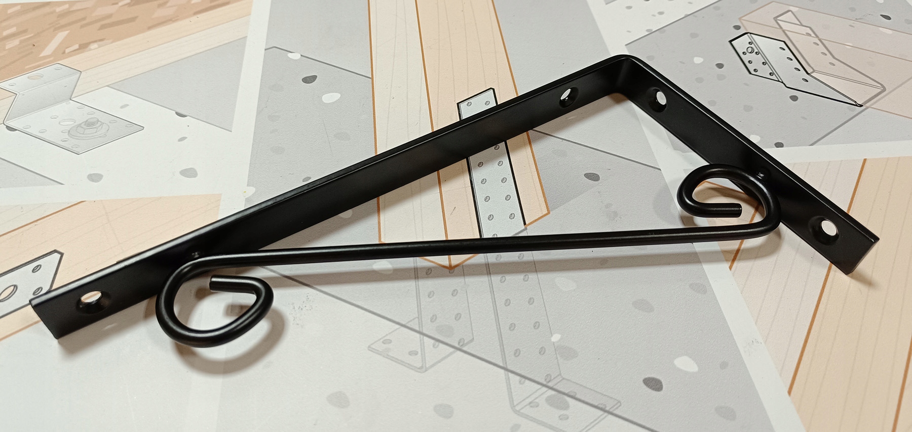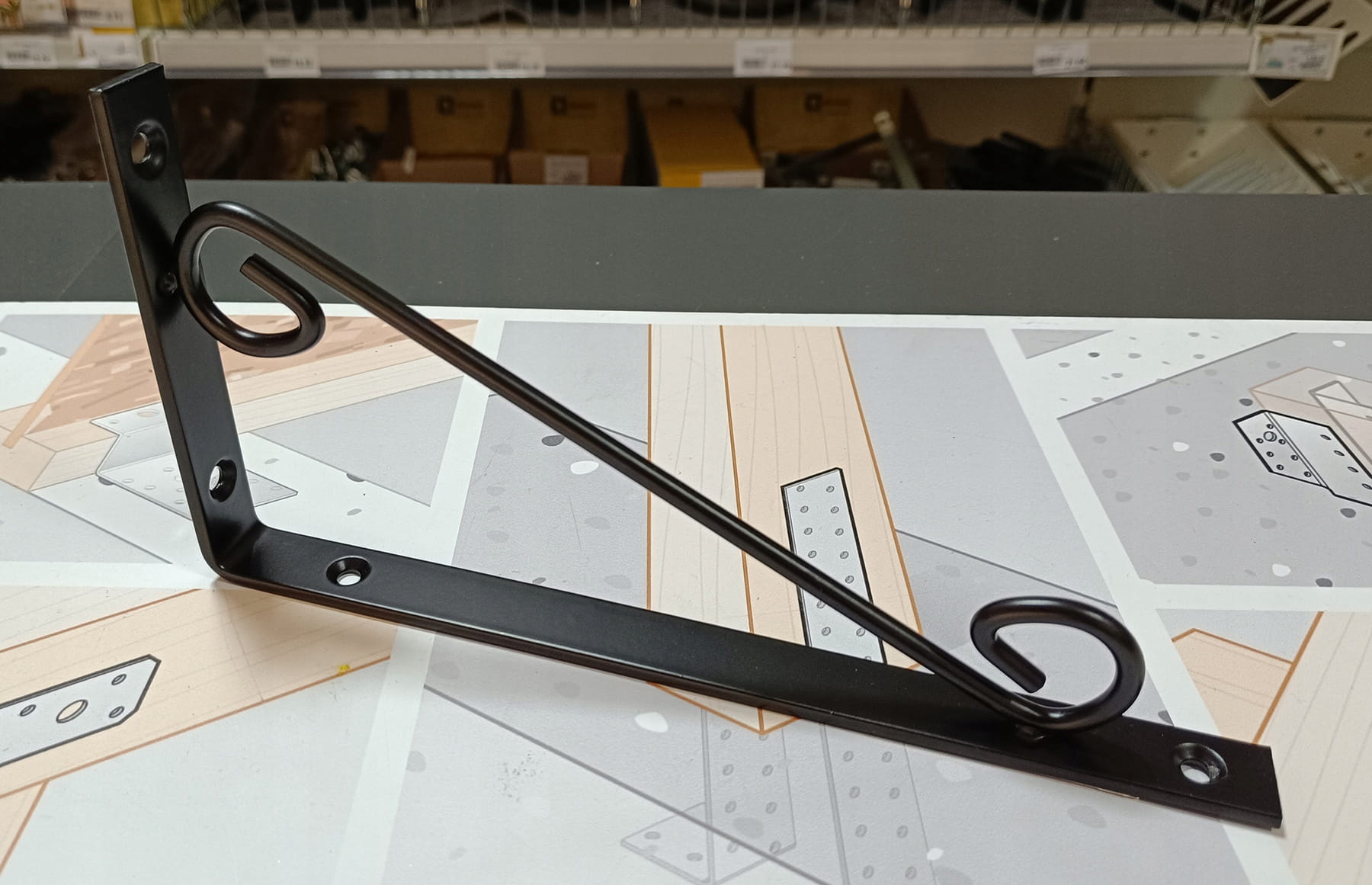 WSPORNIK DEKORACYJNY OZDOBNY POD PÓŁKĘ UCHYT PODPÓRKA LOFT CZARNY 25x12 CM