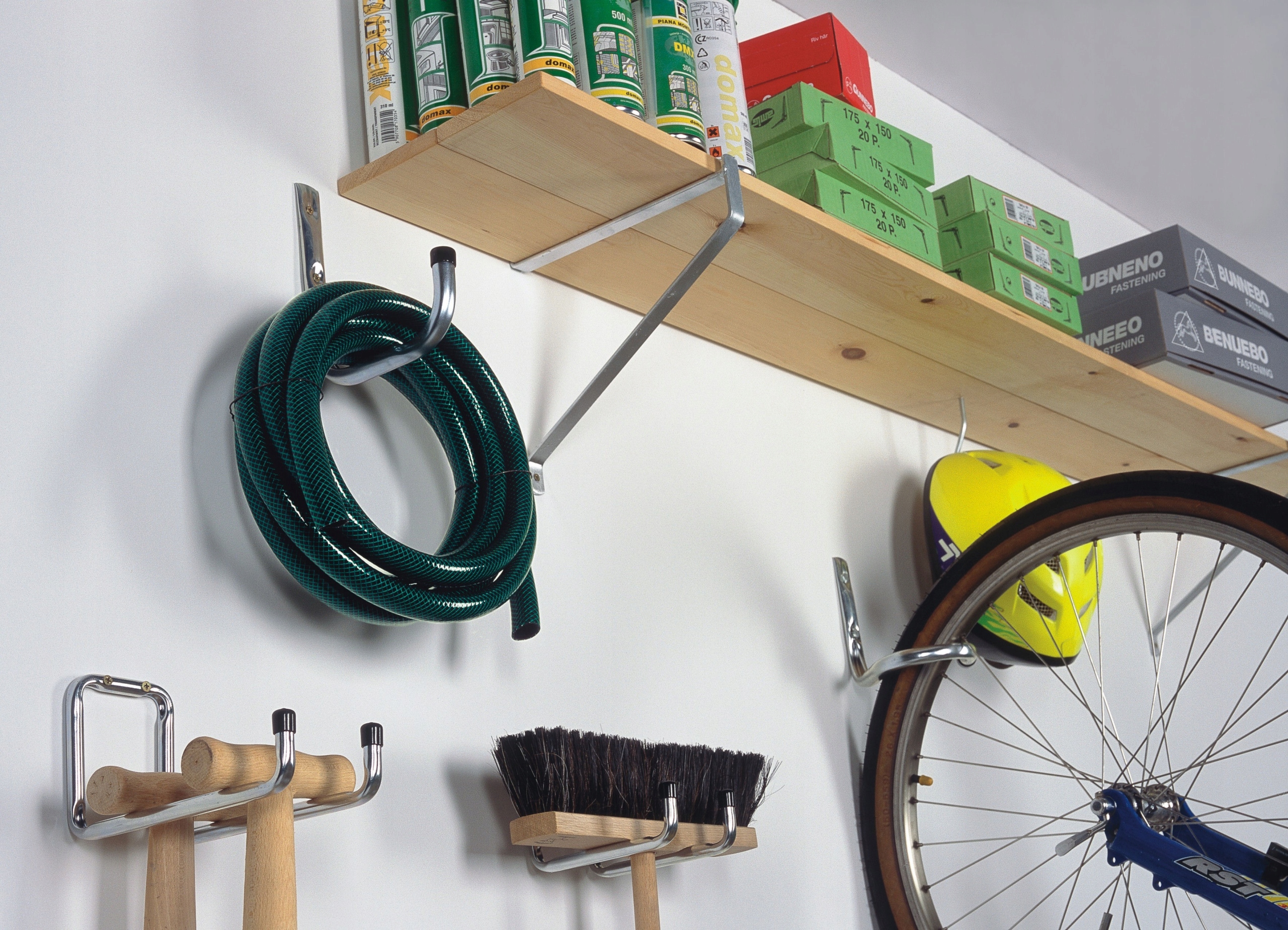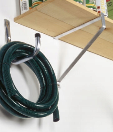 Uniwersalne haki, które mogą pełnić rolę wsporników półki lub służyć składowaniu lekkich desek czy nart.