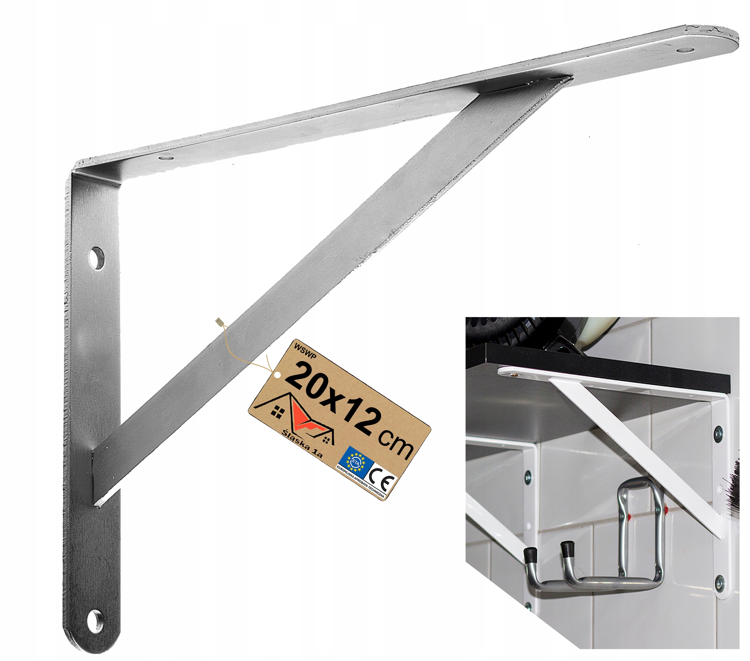 WSPORNIK pod PÓŁKĘ podpórka PÓŁKI ocynkowany KĄTOWNIK UCHWYT MOCNY 20x12 cm