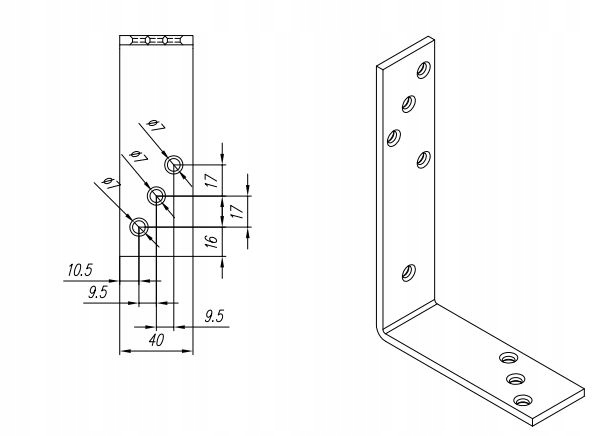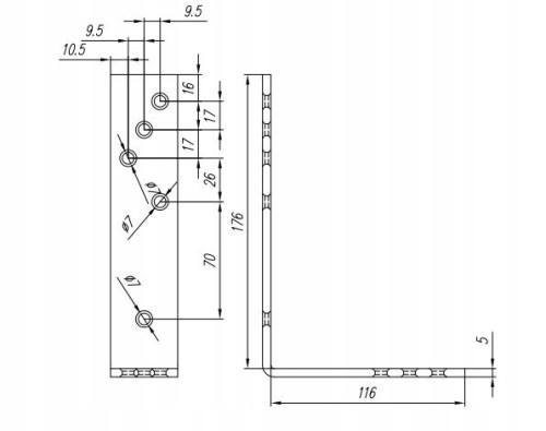 Wytrzymałe kątowniki wykonane z grubego materiału. Ich cechą charakterystyczną jest rozmieszczenie otworów w rzędach przesuniętych względem siebie, dzięki czemu unika się wbijania gwoździ pomiędzy te same włókna drewna. Zmniejsza to ryzyko jego pęknięcia.