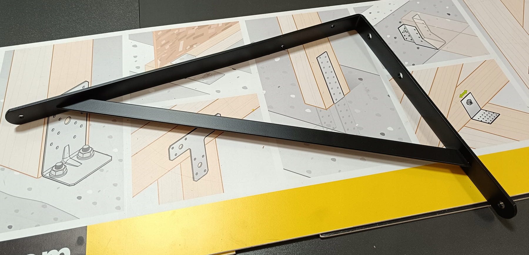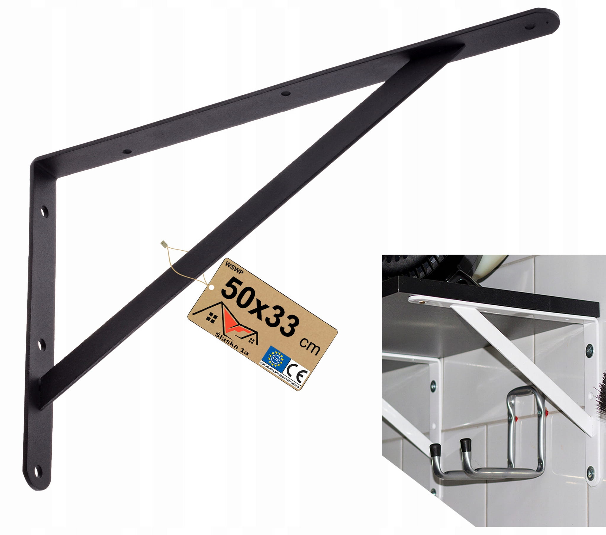 WZMOCNIONY KĄTOWNIK WSPORNIK PODPÓRKA UCHWYT POD PÓŁKI BLAT CZARNY 50x33cm