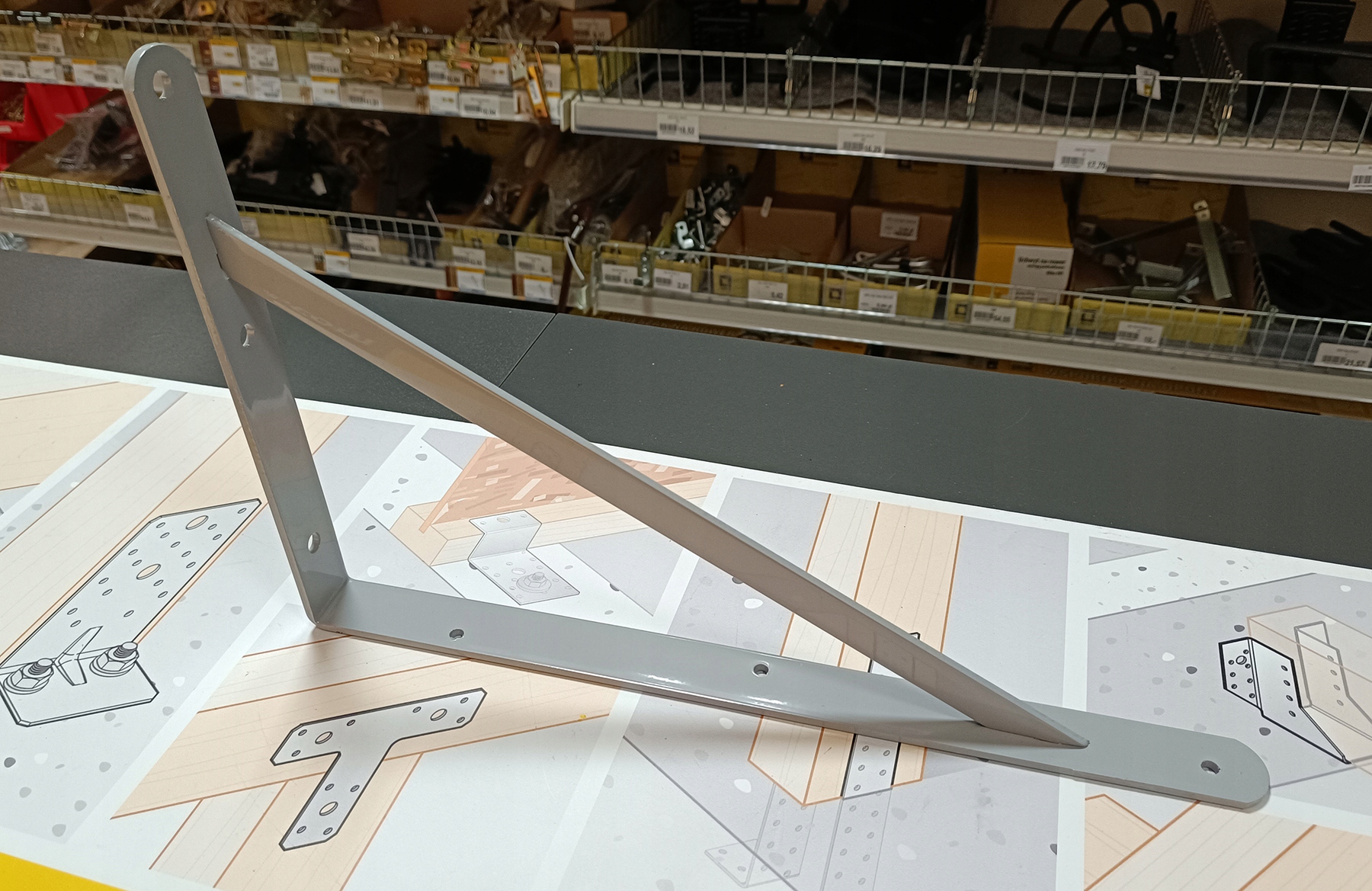 Wspornik wykonany ze stali, wzmacniany. Idealny pod półki w garażu czy spiżarni.