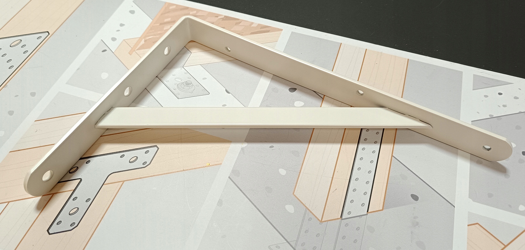 Wspornik wykonany ze stali, wzmacniany. Idealny pod półki w garażu czy spiżarni.