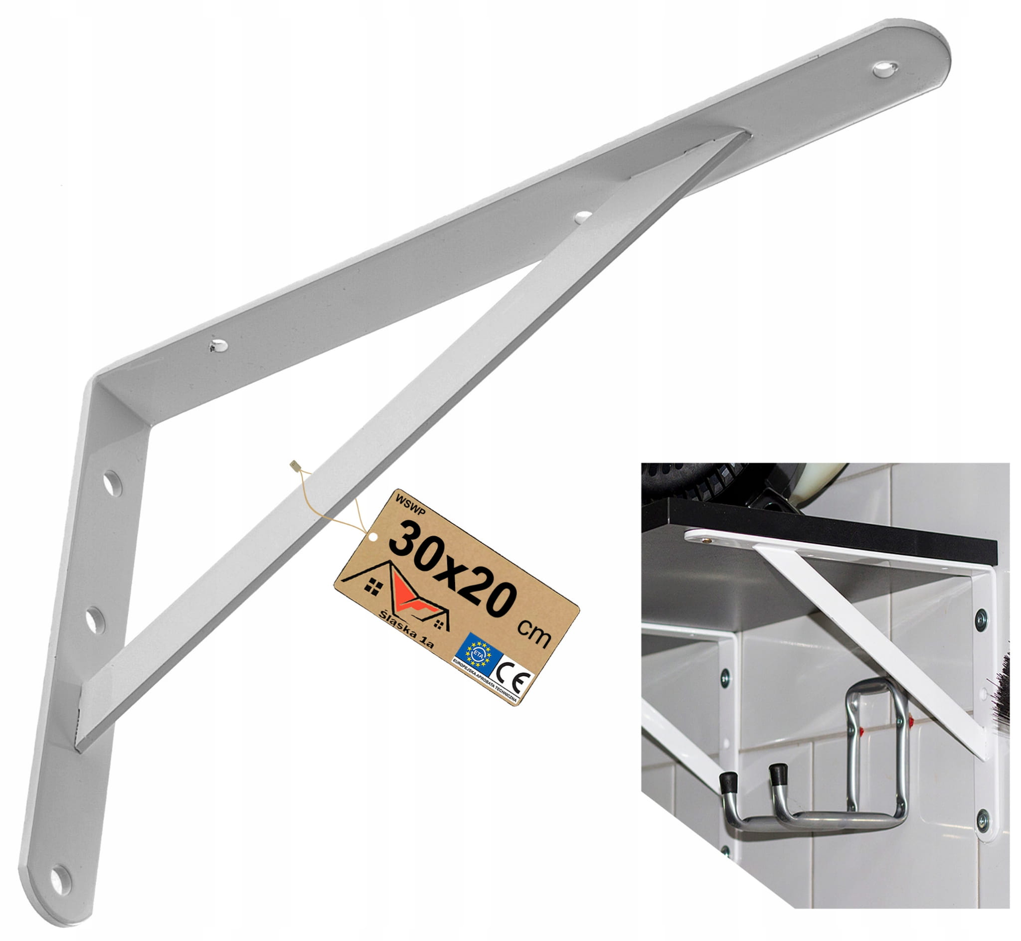 WZMOCNIONY KĄTOWNIK WSPORNIK PODPÓRKA UCHWYT PÓŁKI PODPÓŁKĘ BIAŁY 30x20 CM