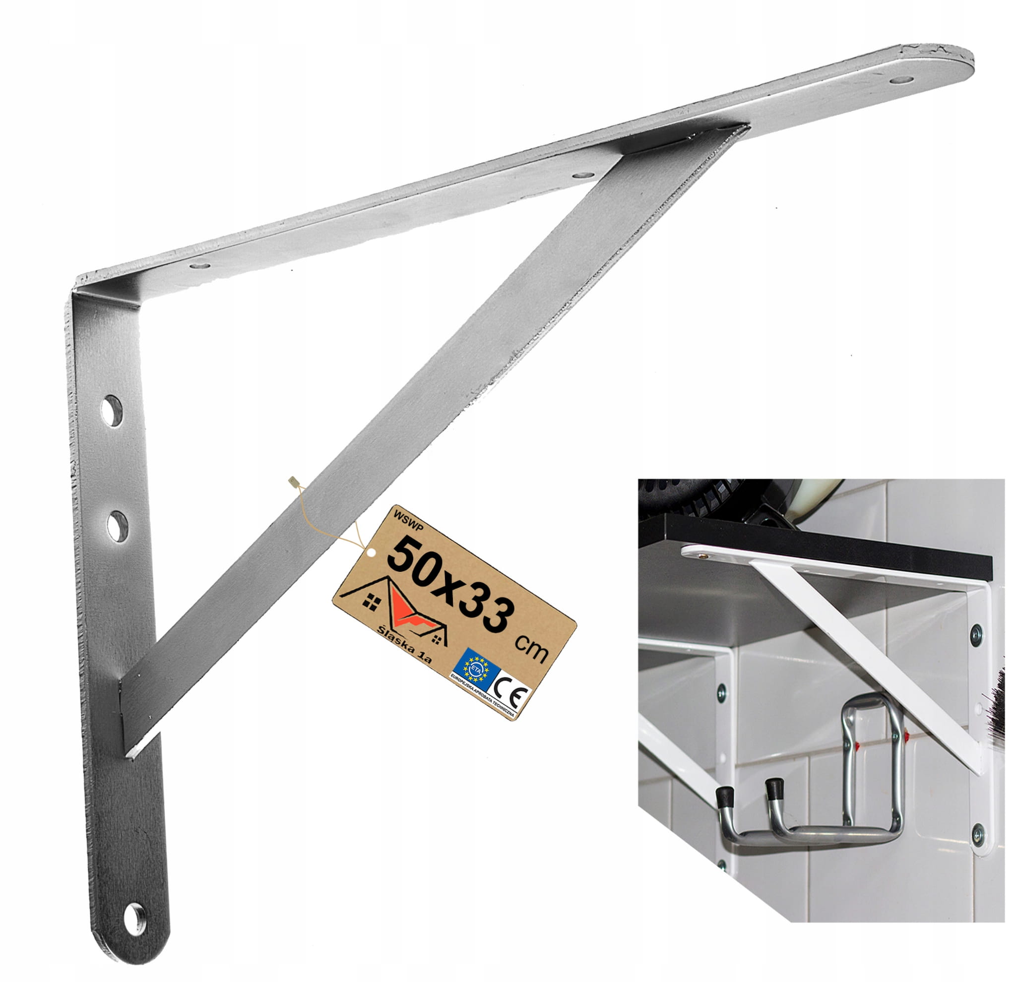 WZMOCNIONY KĄTOWNIK WSPORNIK PODPÓRKA UCHWYT PÓŁKI PÓŁKĘ BLAT STAL 50x33 CM