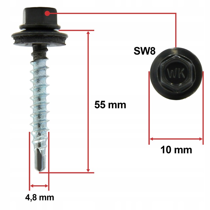 - Wymiary wkręta Lw x dw [mm]: 4,8 x 55