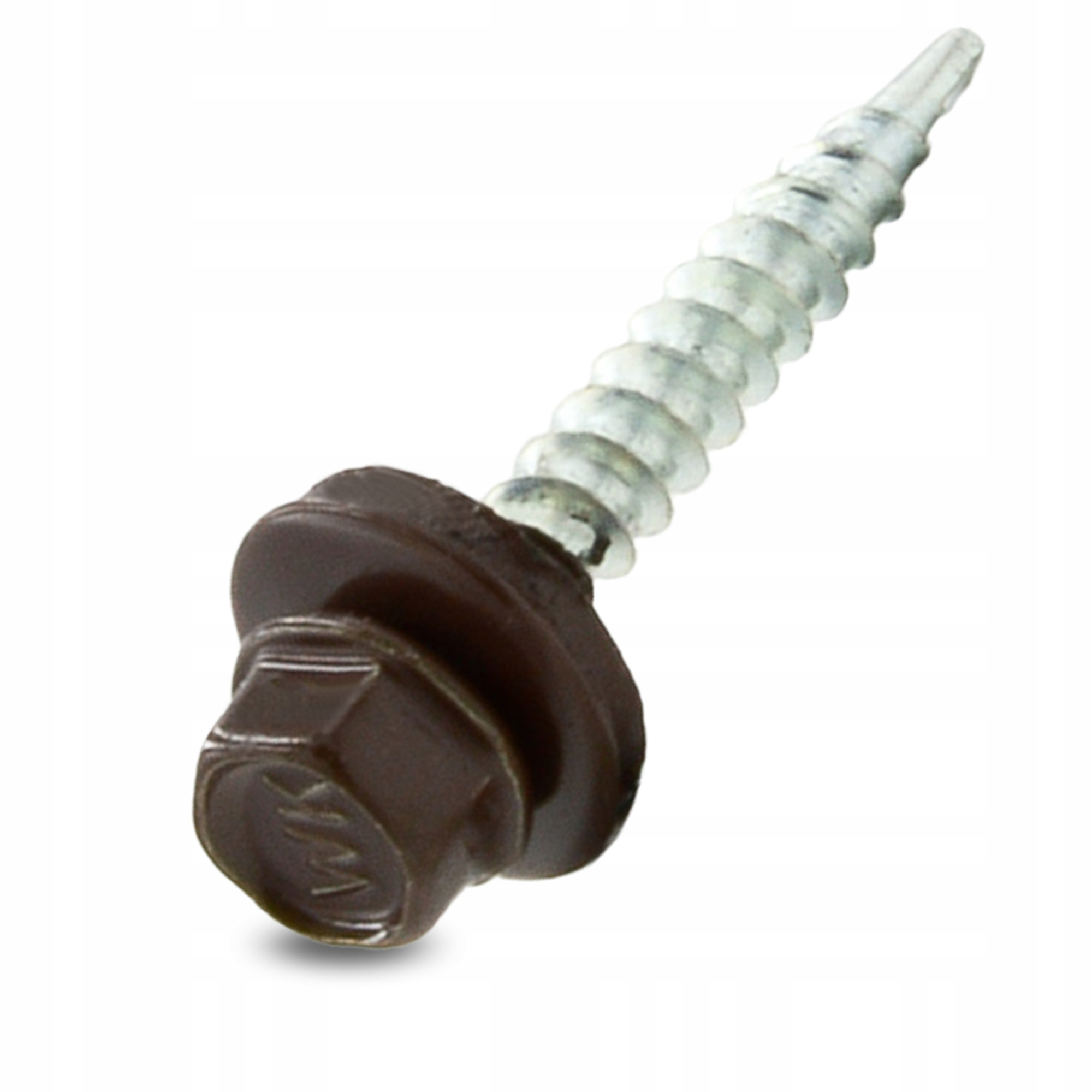 Wkręty farmerskie - samowiercące z podkładką EPDM wykonane w powłoce cynkowej do mocowania blachy, blachodachówek i obróbek blacharskich do podłoża drewnianego. Wkręty typu farmer lakierowane są wg. palety kolorów RAL
