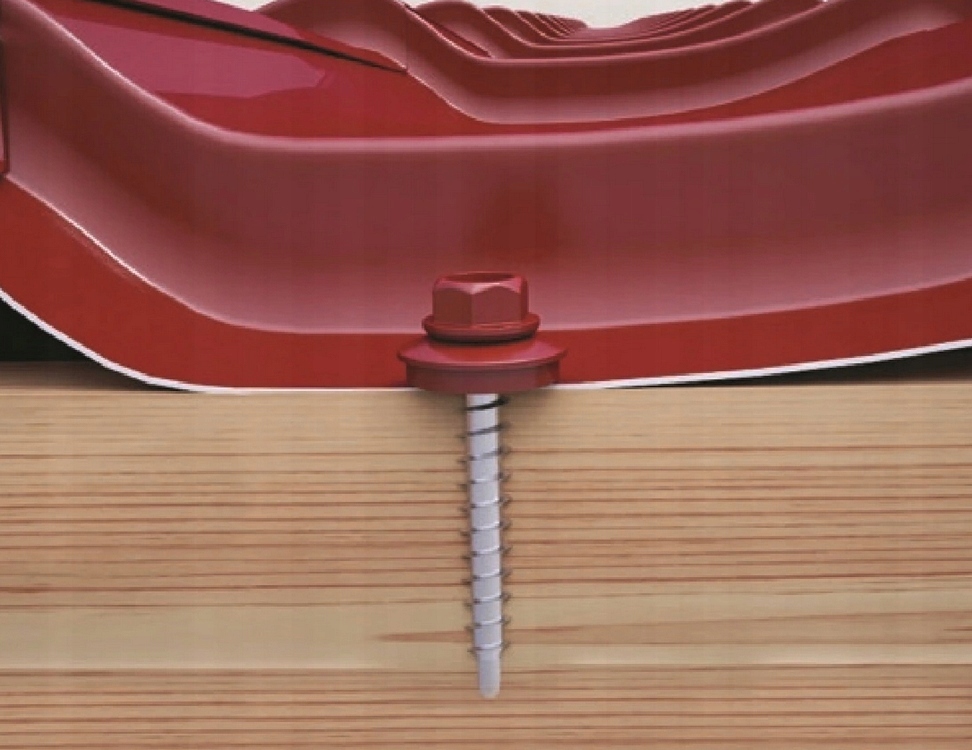 Wkręt posiada końcówkę samowiercącą oraz gwint przeznaczony do montażu w profilu drewnianym. Uszczelka stalowa ze specjalną warstwą gumy EPDM, po wkręceniu samowulkanizuje się z podłożem tworząc szczelne połączenie. Uszczelka stalowa gwarantuje najlepszą jakość i trwałość powłoki lakieru proszkowego oraz nie odkształca się przy dokręcaniu.