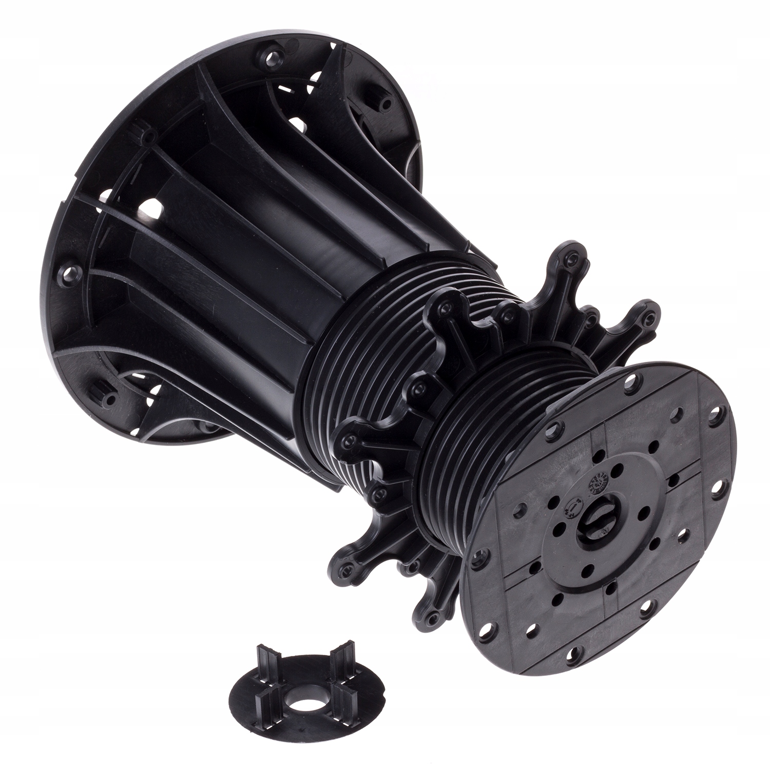 - Pierścień regulujący wysokość dopasowuje i wyrównuje wysokość tarasu.