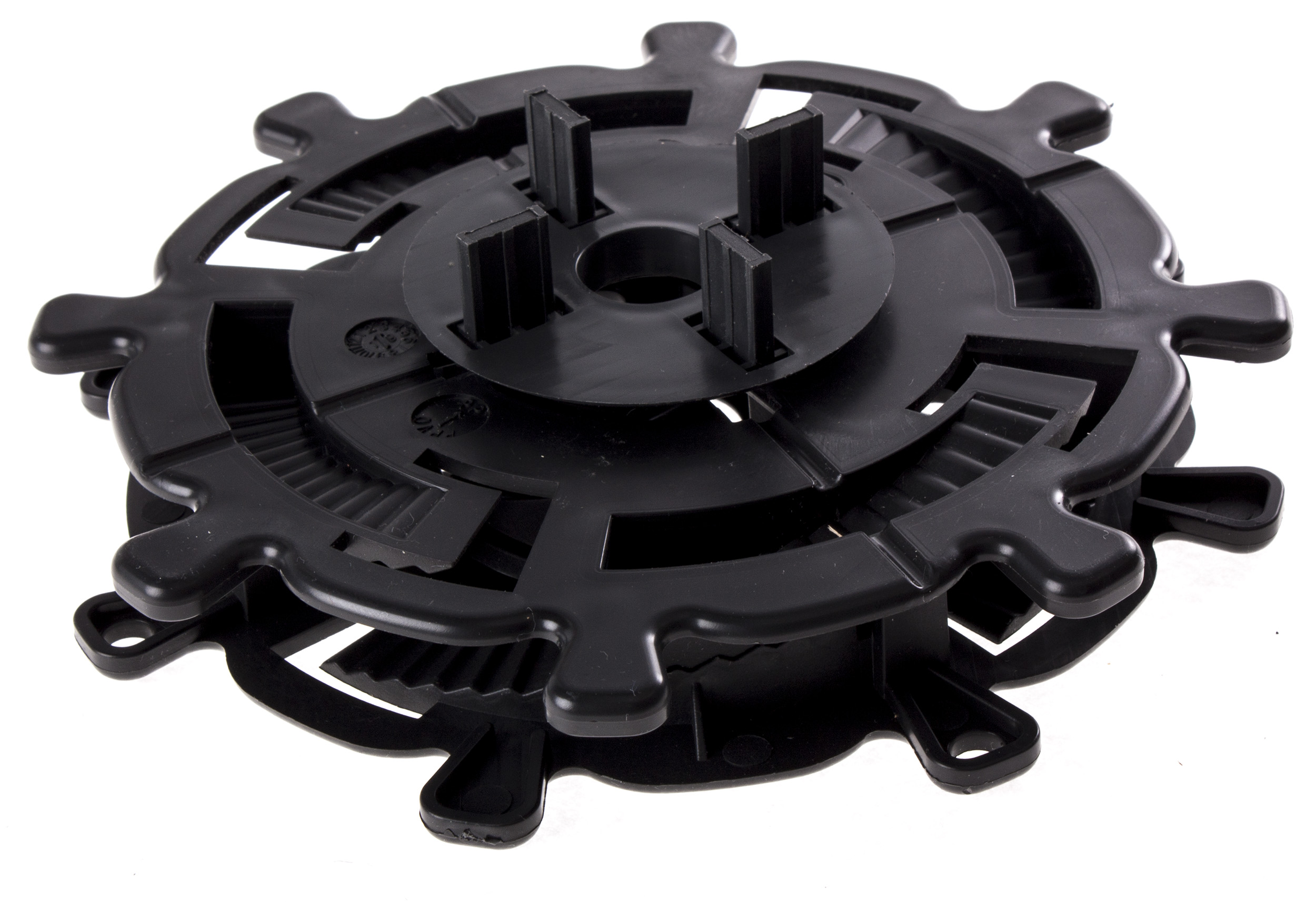 System podkładek poziomujących układanych w żeberkach „główki” wspornika zwiększa stabilność, dodatkowo zapewnia wyciszenie systemu.