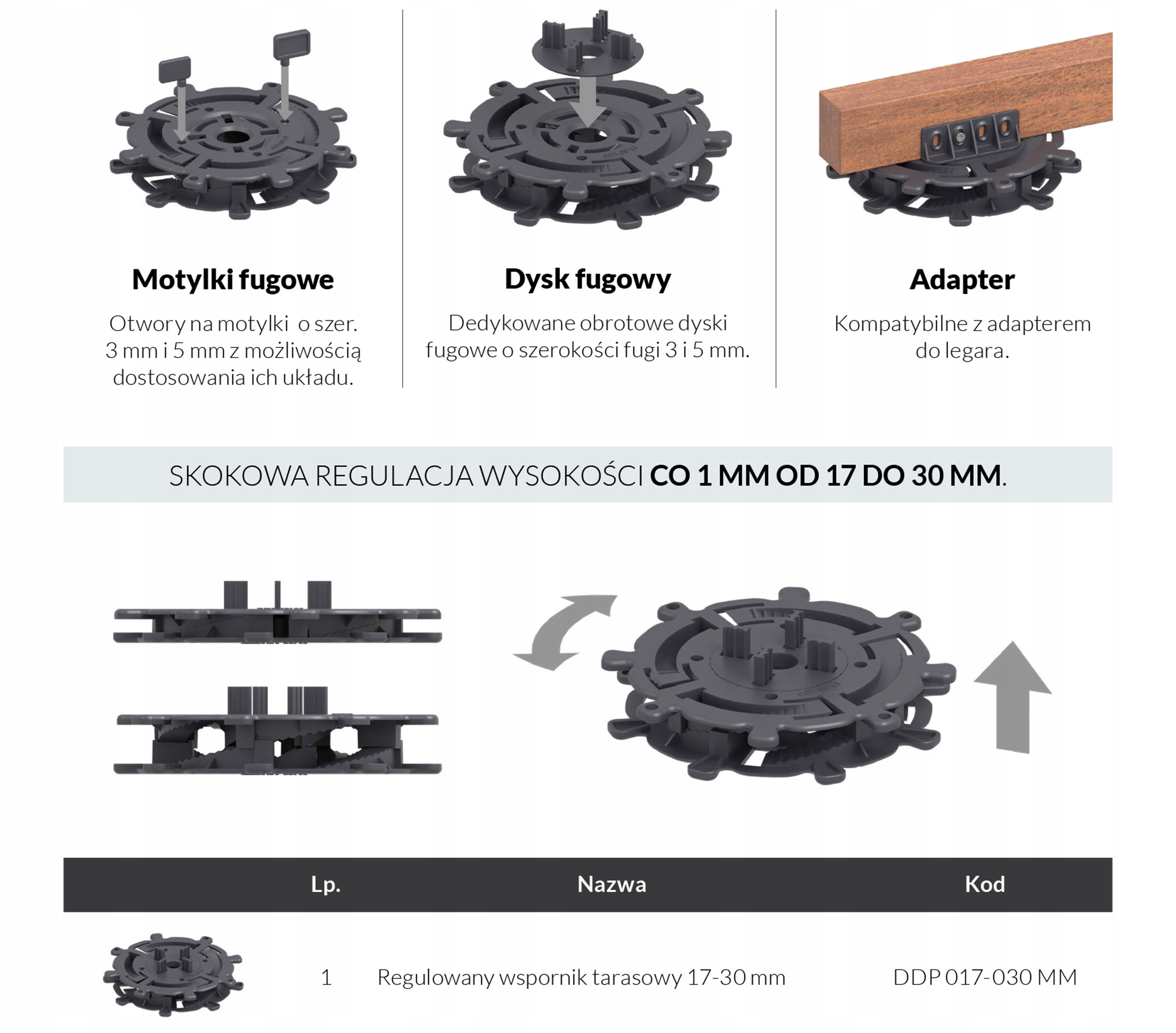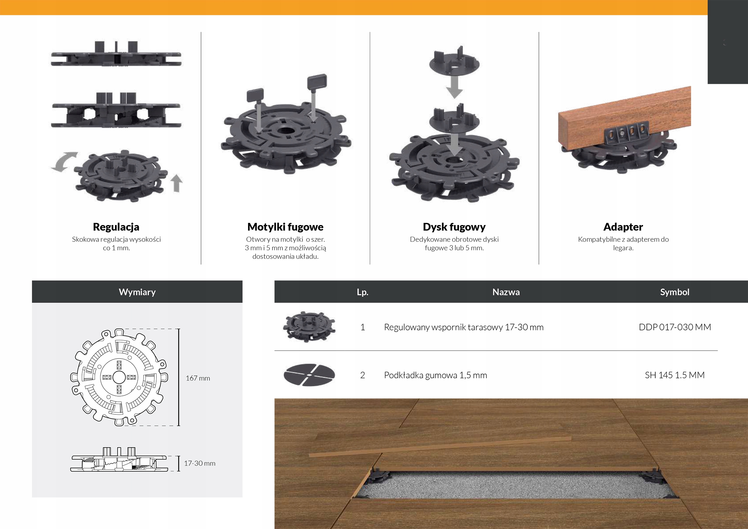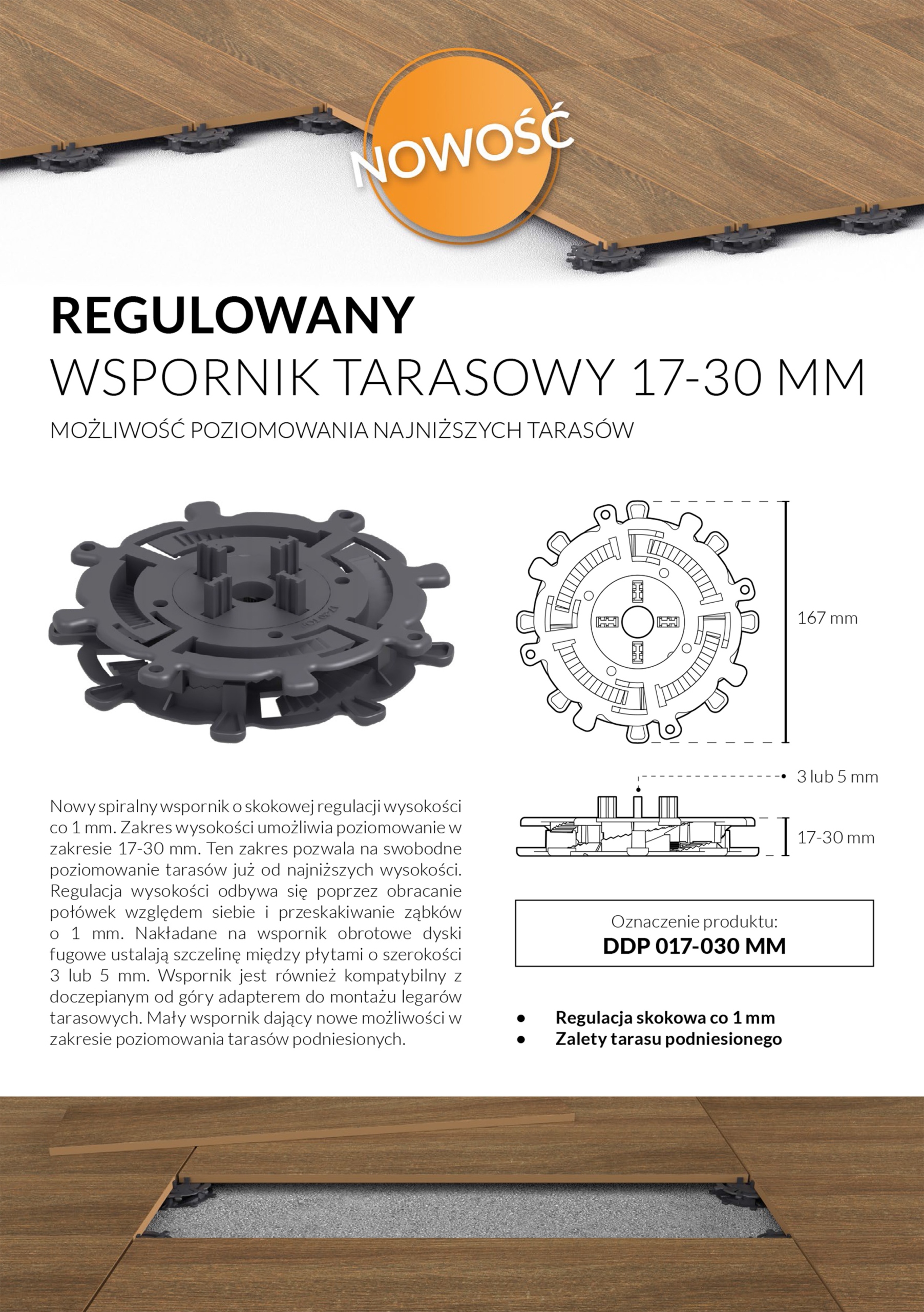 Wspornik tarasowy regulowany 17-30 mm płyty legar