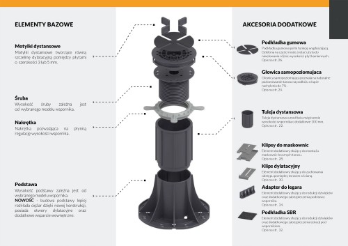 Wspornik regulowany pozwala przede wszystkim na dokładne dopasowanie wysokości podtrzymywanych płytek: wysokość reguluje się ręcznie.