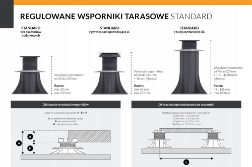 - Stabilna podstawa to solidny fundament tarasu, który wytrzyma obciążenia sięgające nawet 1000 kilogramów na jeden wspornik.