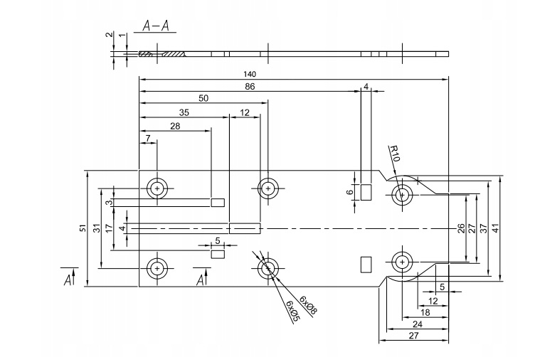 - 2 otwory - Ø10mm.
