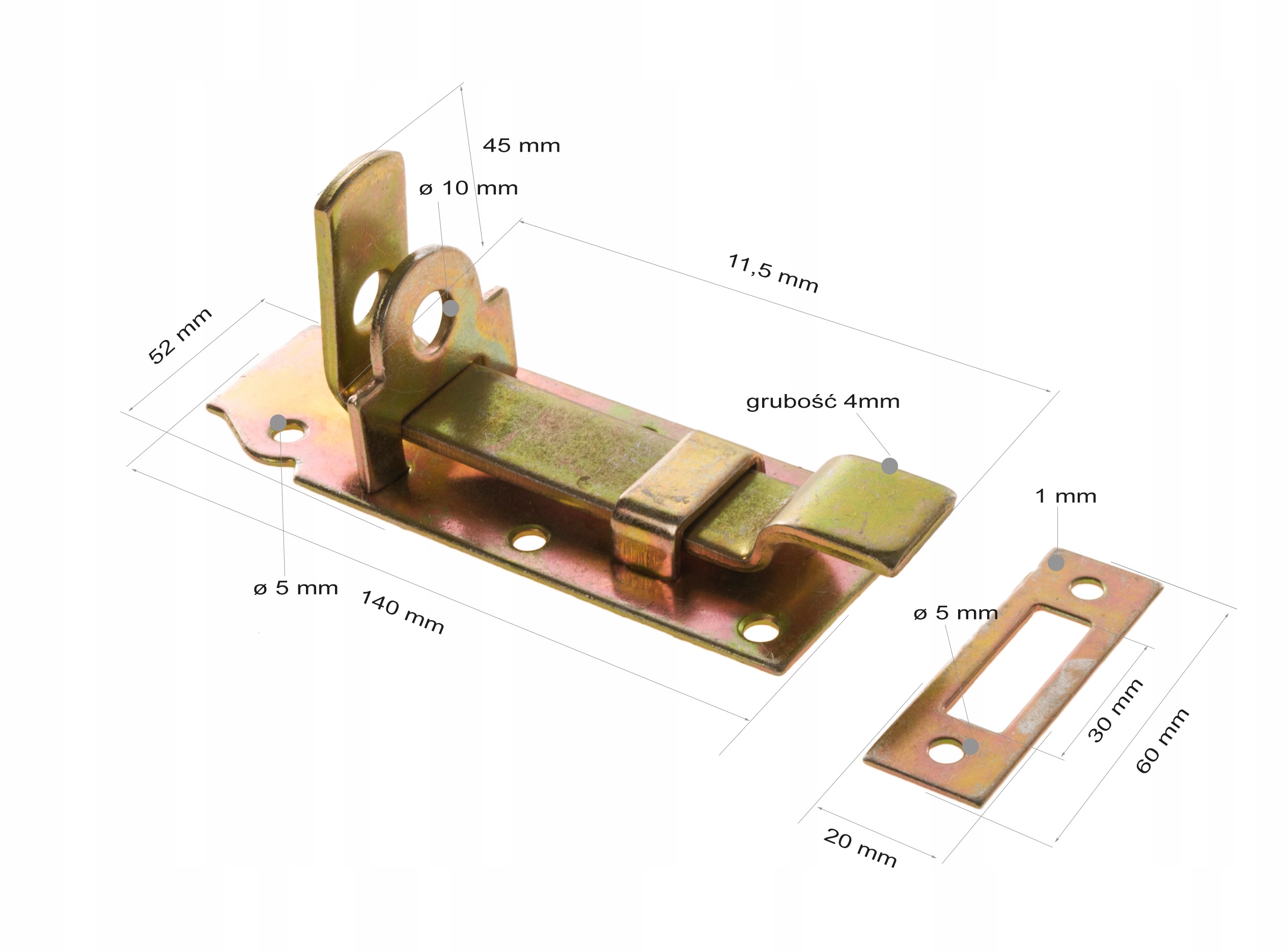 Zasuwka z wygiętym ryglem WZW 140 to element wykonany z galwanizowanej blachy o wymiarach 140x51x5,0 mm. Jest dostępna w kolorze złotym i znajduje zastosowanie jako element zamykający w drzwiach, skrzyniach lub okiennicach. Montuje się ją za pomocą śrub, wkrętów lub gwoździ. Charakteryzuje się nie tylko solidnym wykonaniem, ale także estetycznym wyglądem. Może być wykorzystywana zarówno w konstrukcjach drewnianych, jak i stalowych. Zasuwka zamykana jest za pomocą kłódki, co zapewnia dodatkowy poziom bezpieczeństwa