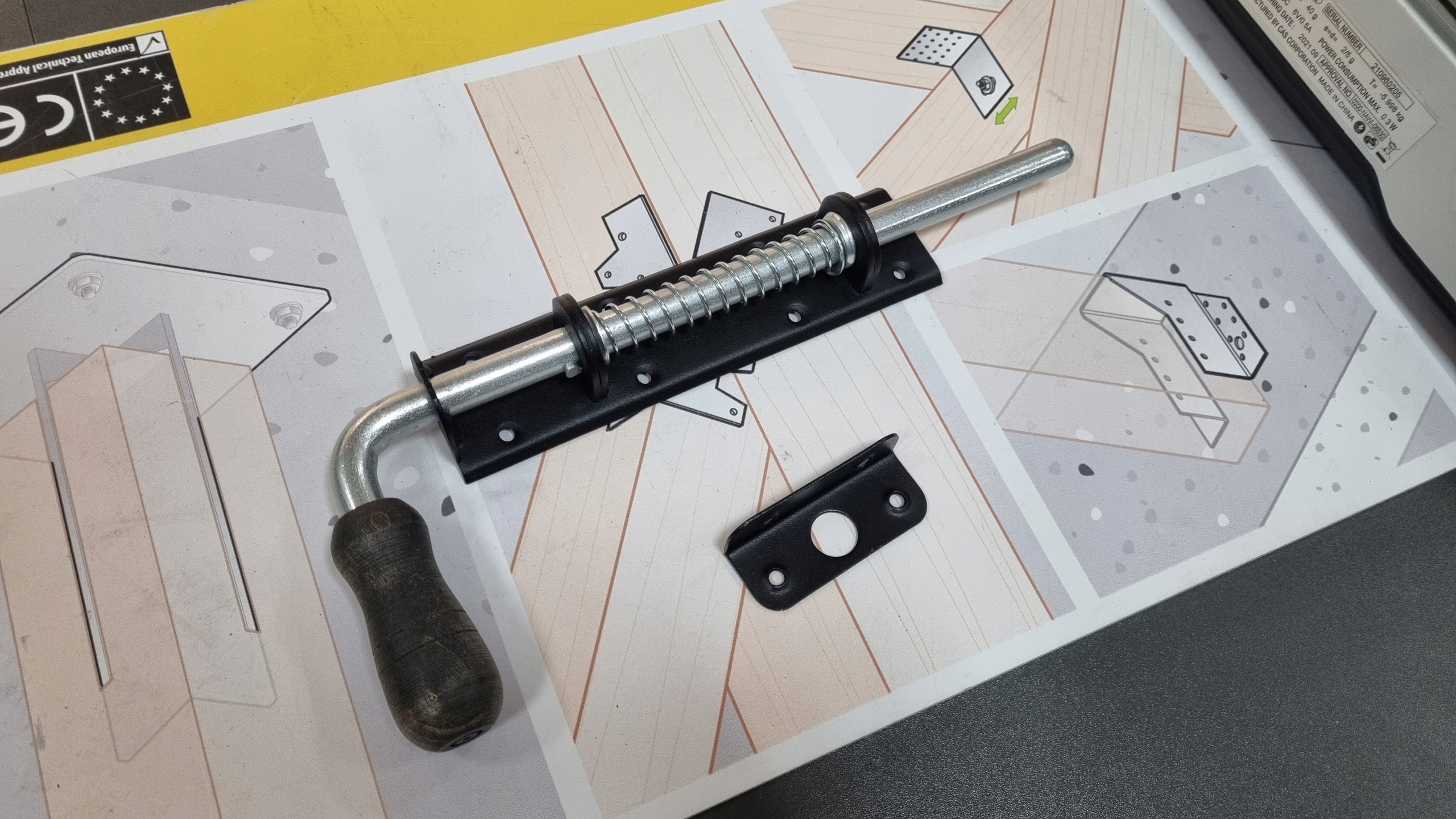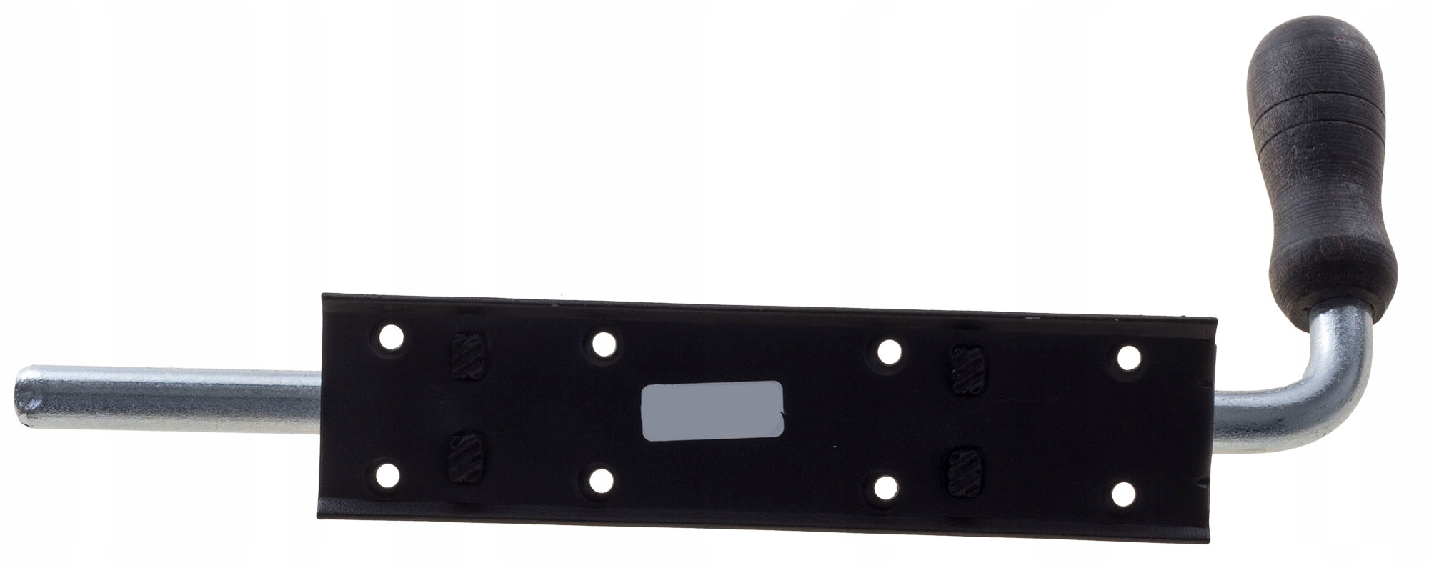 Zasuwa sprężynowa o wymiarach 300x190x48 mm, wyposażona w ergonomiczną rączkę drewnianą oraz blokadę, dedykowana do zastosowania przy bramach i furtkach. Prezentowana wersja to model wykonany z blachy ocynkowanej i pomalowanej proszkowo na kolor czarny RAL 9005